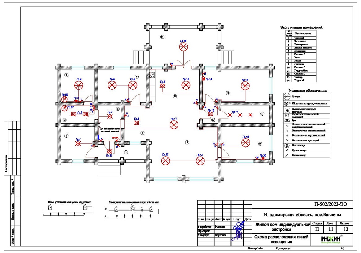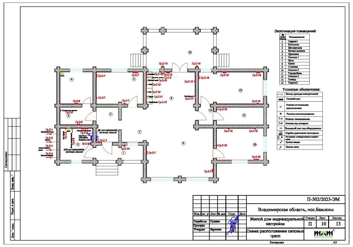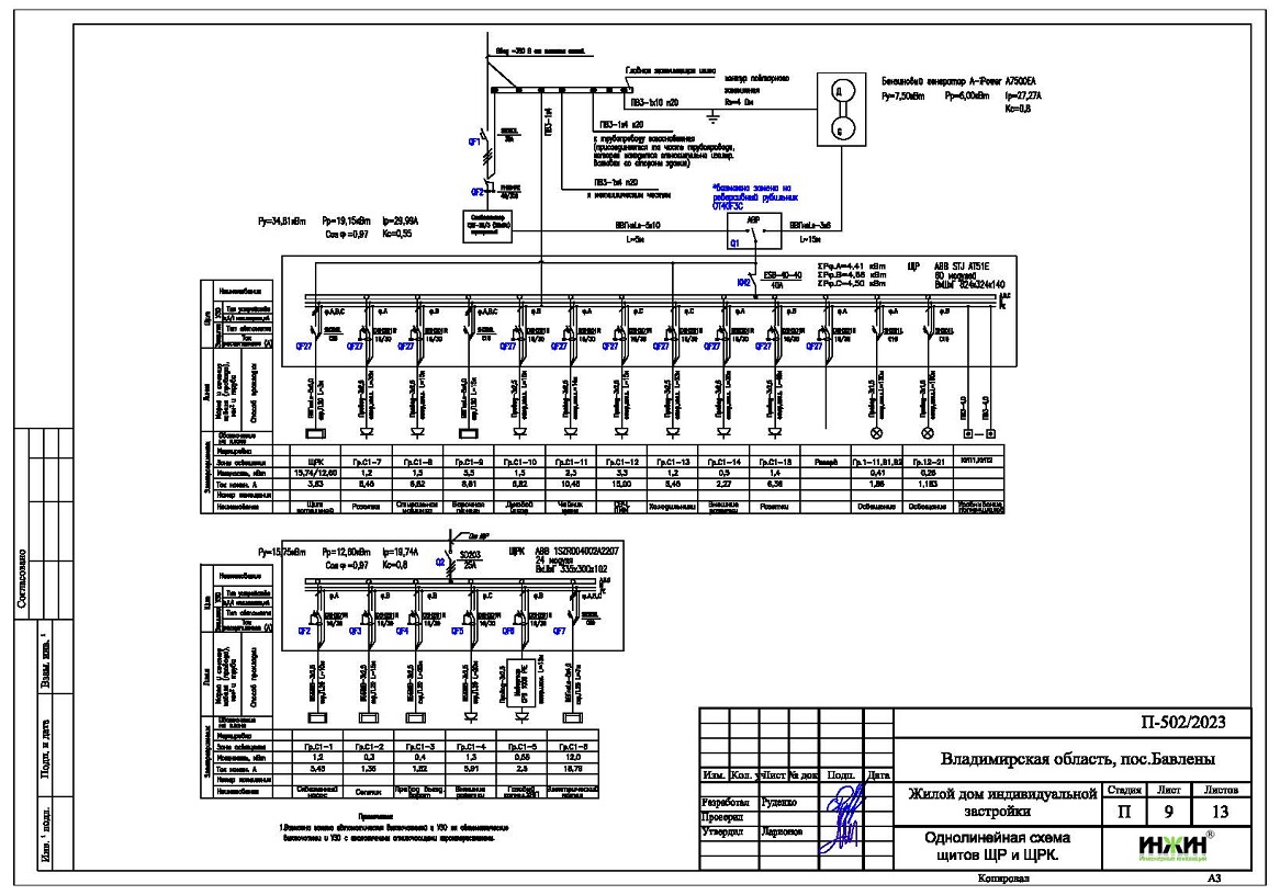 Объем проекта электрики дома 200 м.кв.: 13 листов.