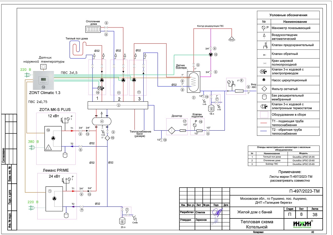 Объем проекта отопления дома в ДНП "Талицкие берега": 38 листов.