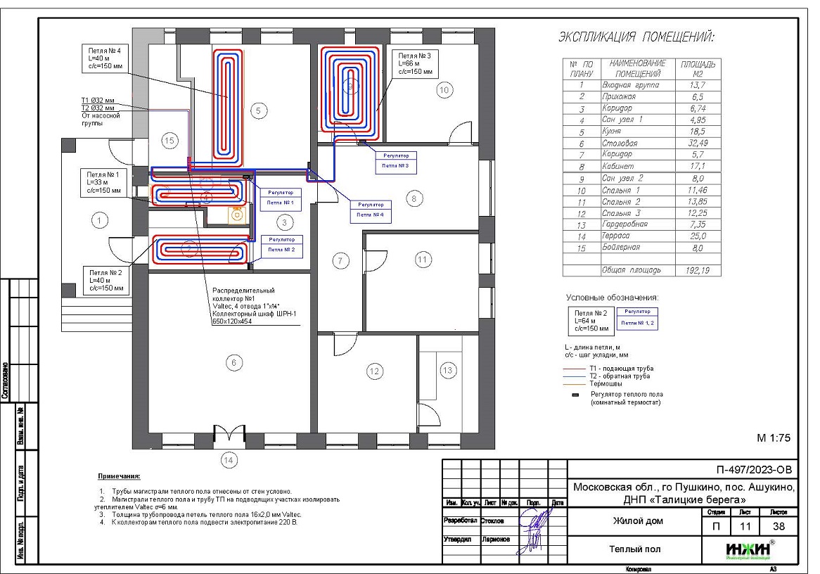 Описание проекта отопления, котельной, водоснабжения, канализации и теплого пола частного дома 153 м.кв. в ДНП "Талицкие берега".