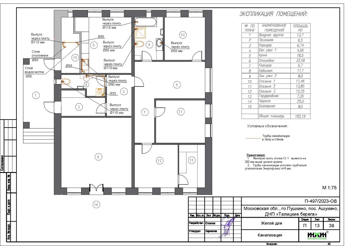 Внутренняя канализация (проект канализации) дома в ДНП "Талицкие берега".