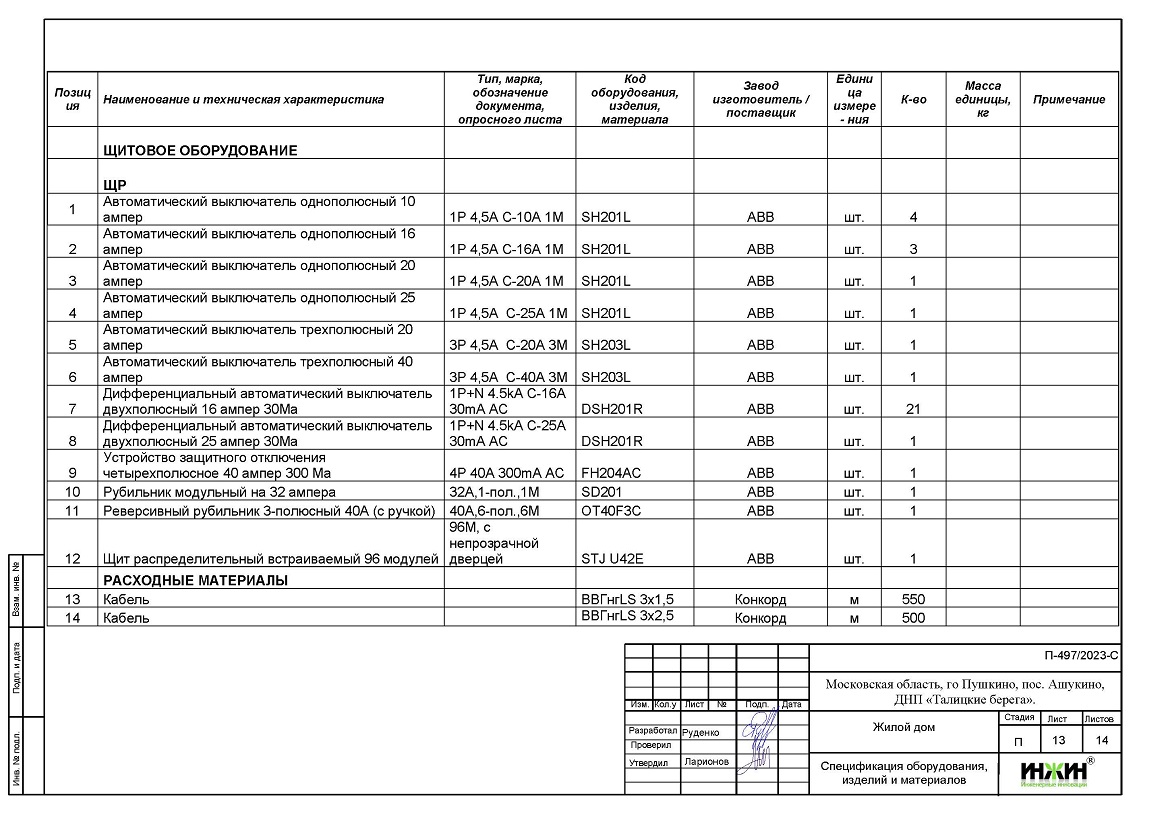 5. Спецификация материалов и оборудования по электрике и электропроводке дома в ДНП "Талицкие берега".