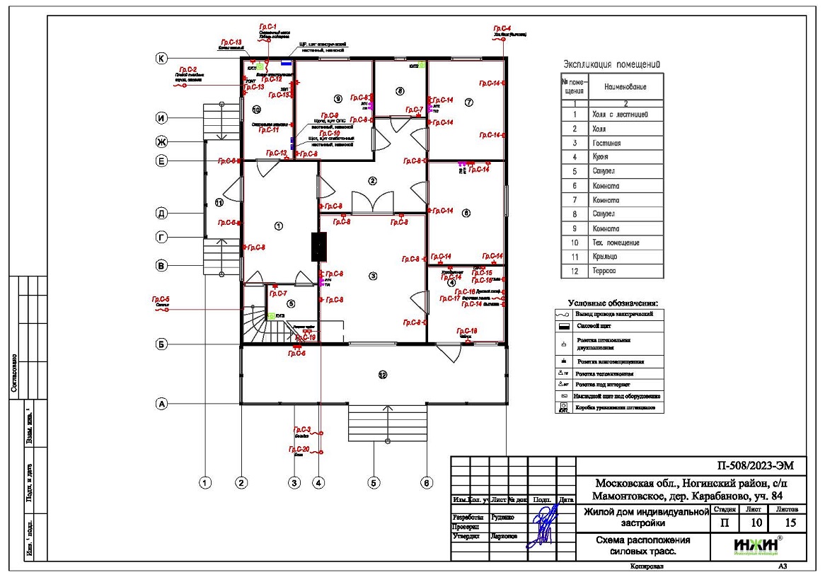 Для этого загородного дома в дер. Карабаново выполнен проект электрики.