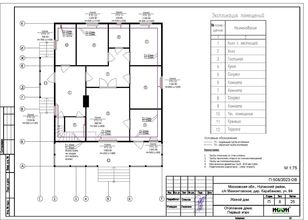 Объем проекта отопления дома в дер. Карабаново: 25 листов.