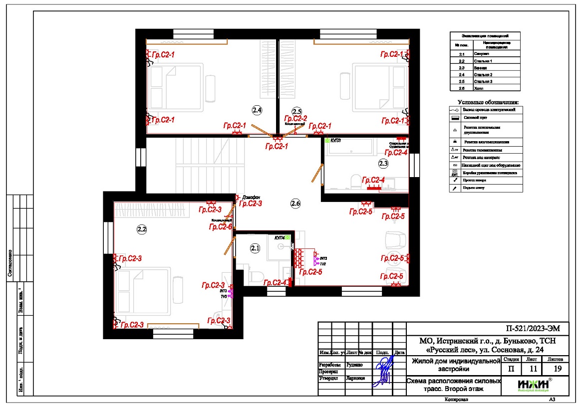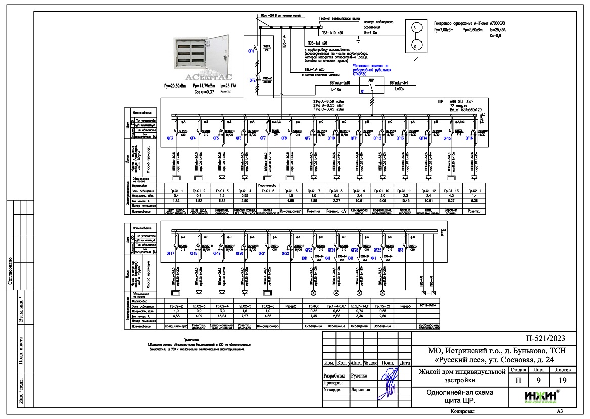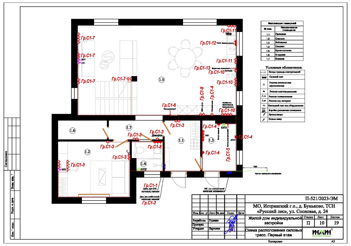 3. Чертежи электропроводки дома в ТСН «Русский лес».