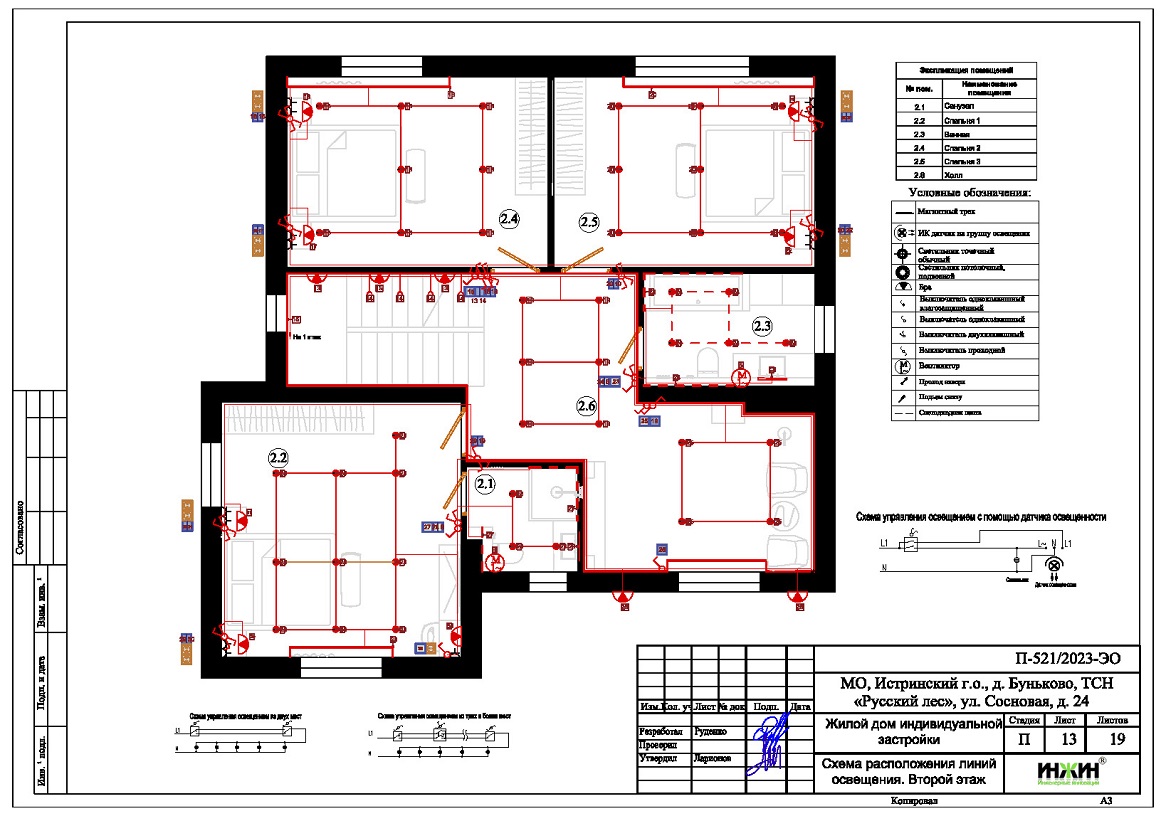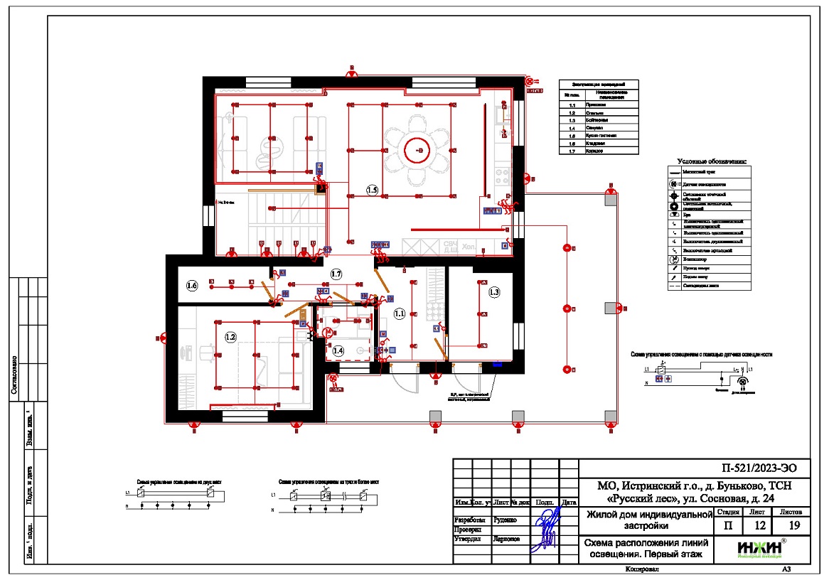 4. Чертежи групповых осветительных сетей дома в ТСН «Русский лес».