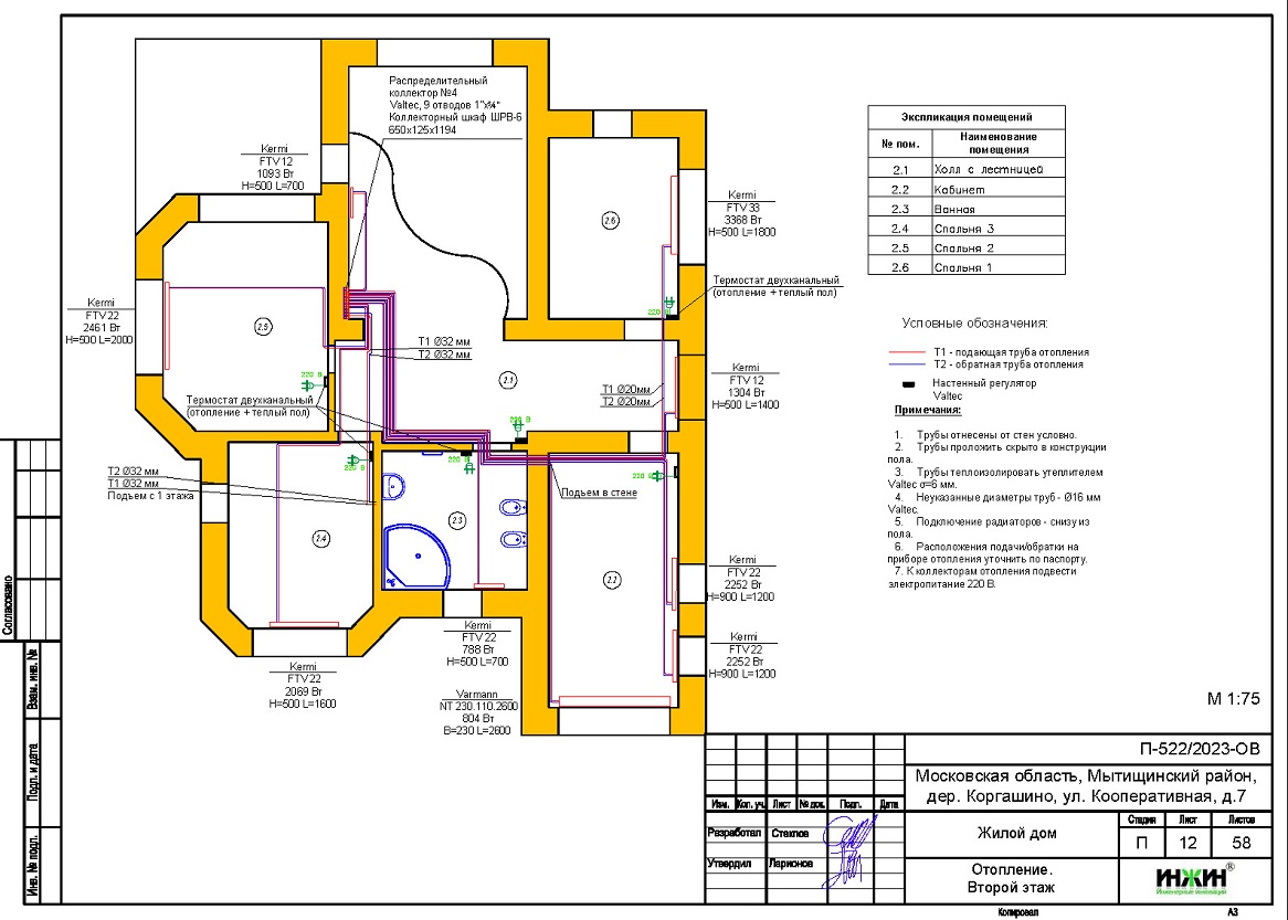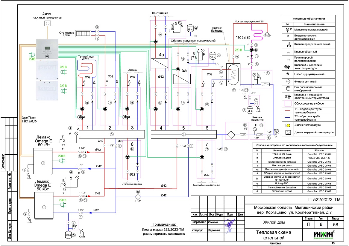 Объем проекта отопления, канализации и водоснабжения дома в дер. Коргашино: 58 листов.