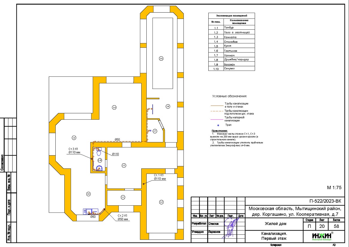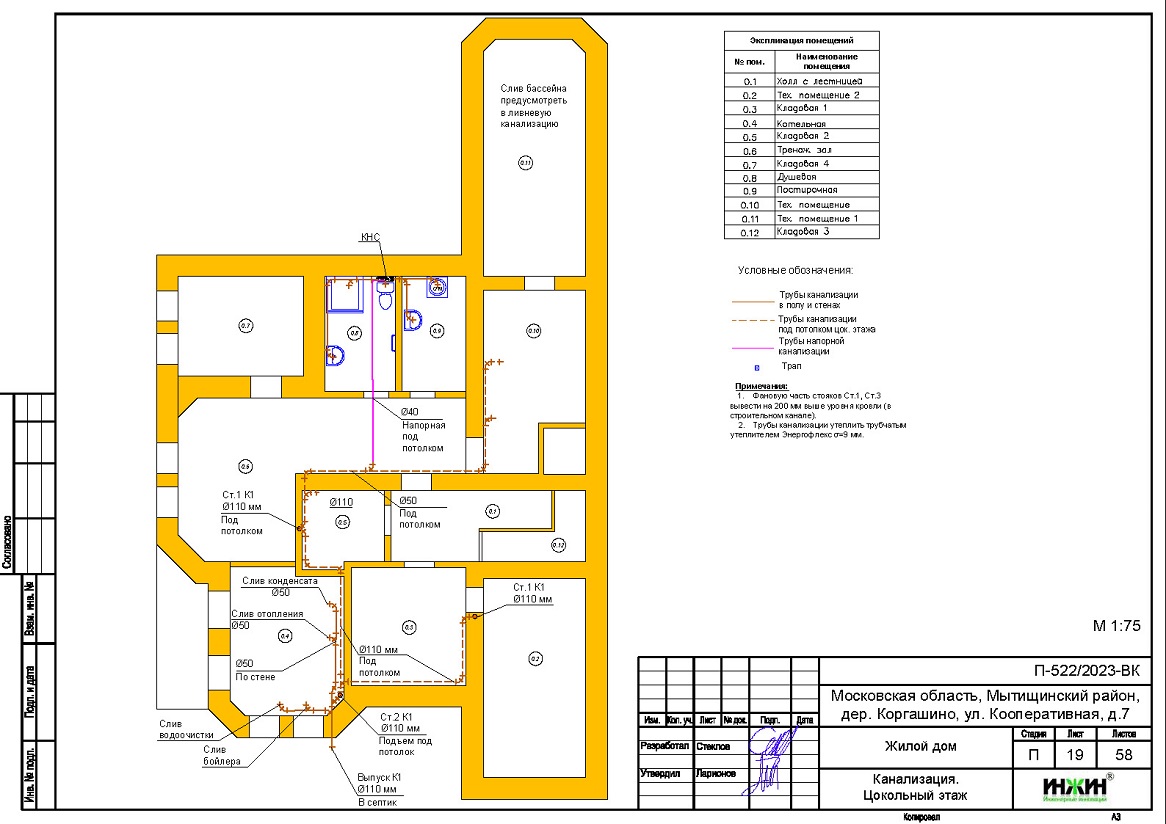 Внутренняя канализация (проект канализации) дома в дер. Коргашино.