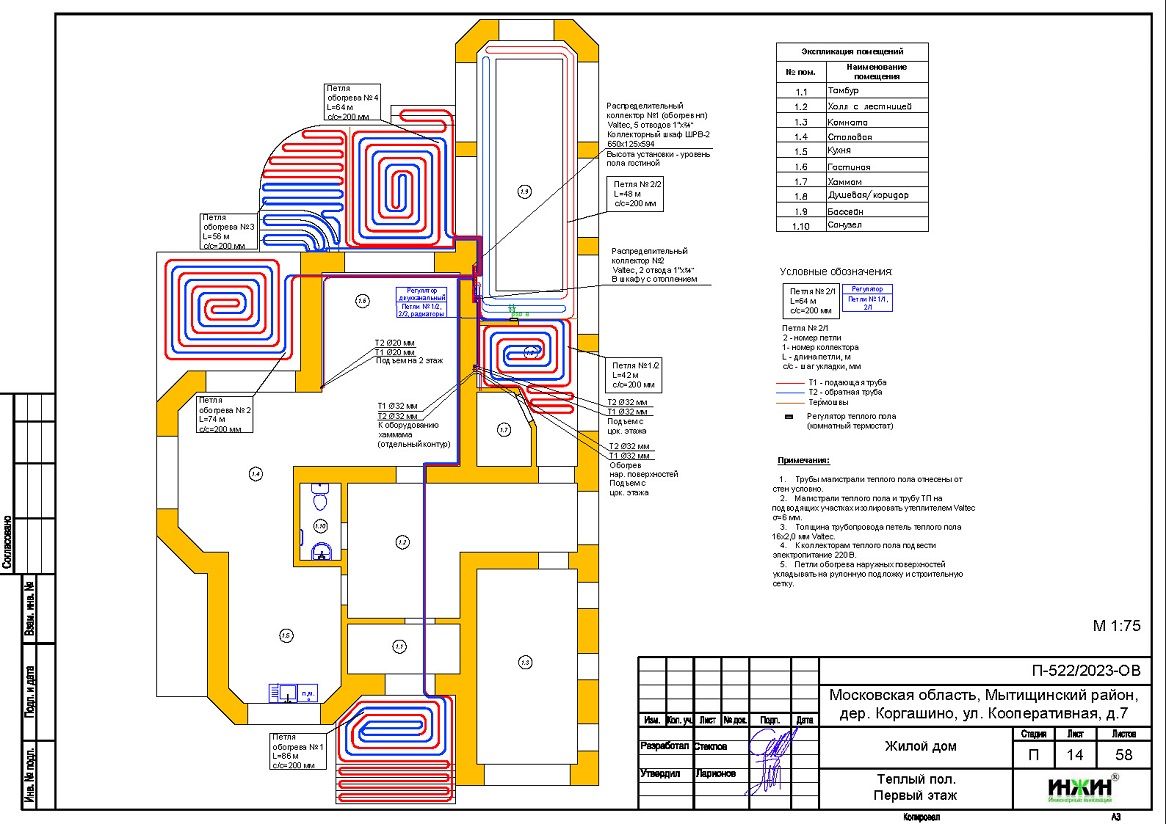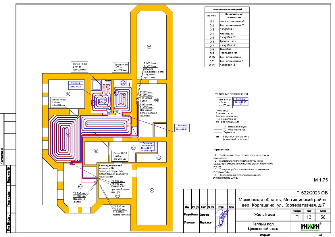 Водяной теплый пол дома в дер. Коргашино (проект теплого пола).