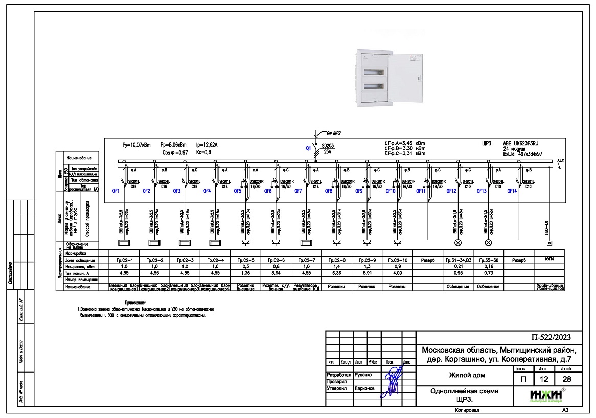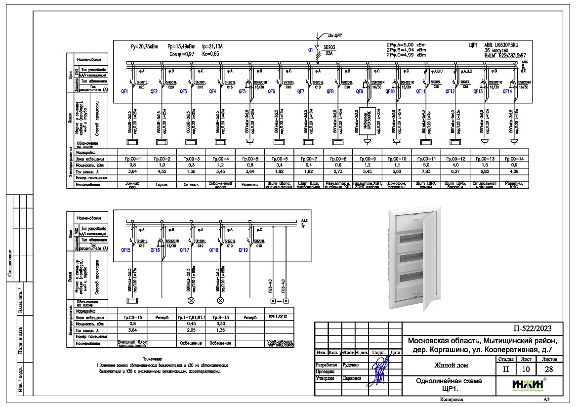 2. Однолинейные схемы вводного распределительного устройства и электрических распределительных щитов дома 430 м.кв.