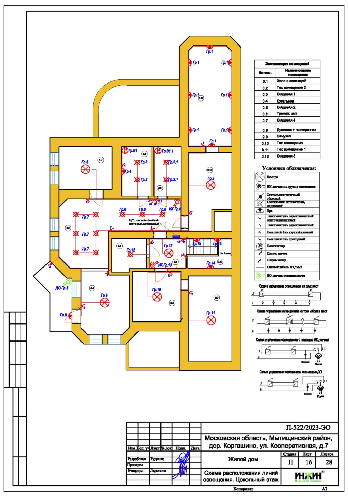 4. Чертежи групповых осветительных сетей дома в дер. Коргашино.