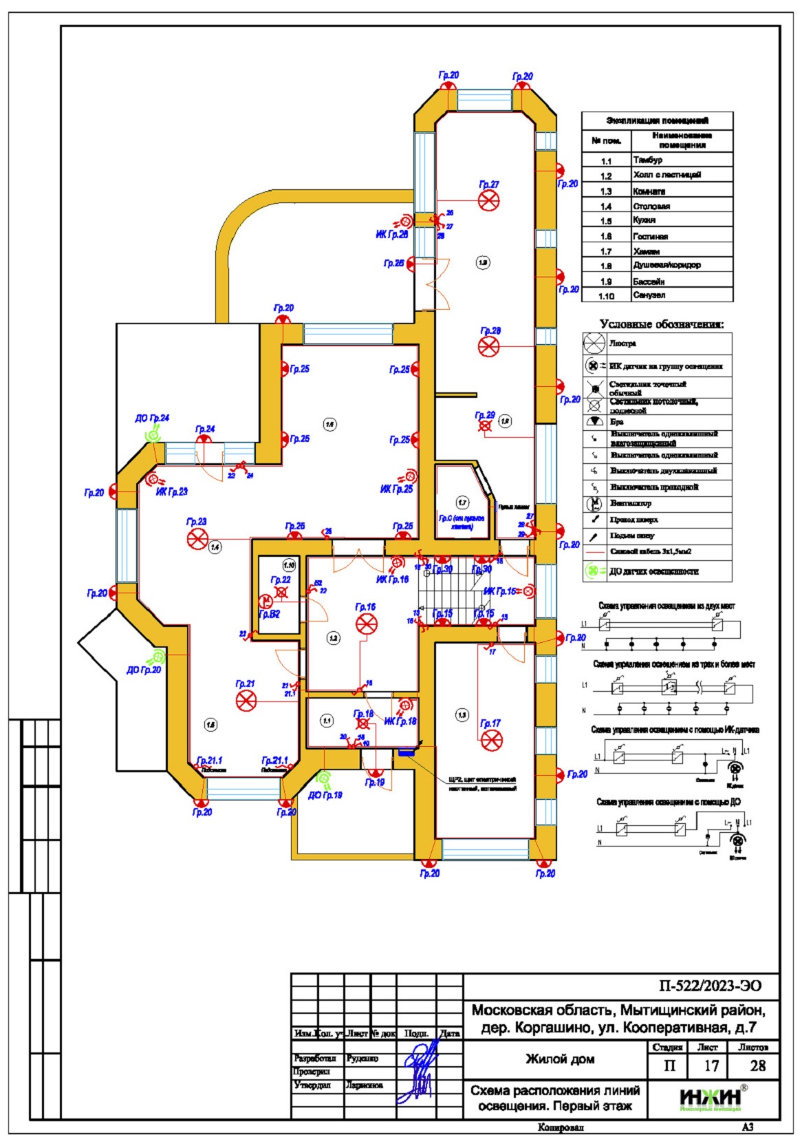 Объем проекта электрики дома 430 м.кв.: 28 листов.