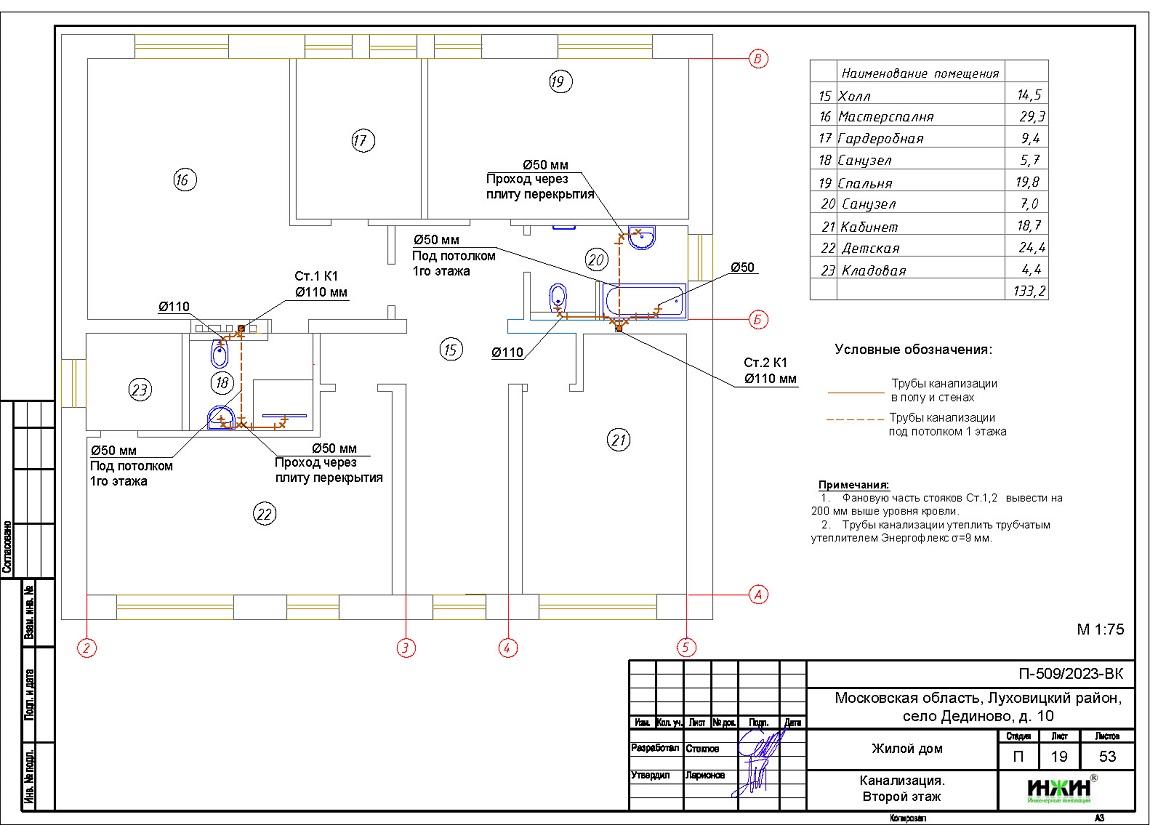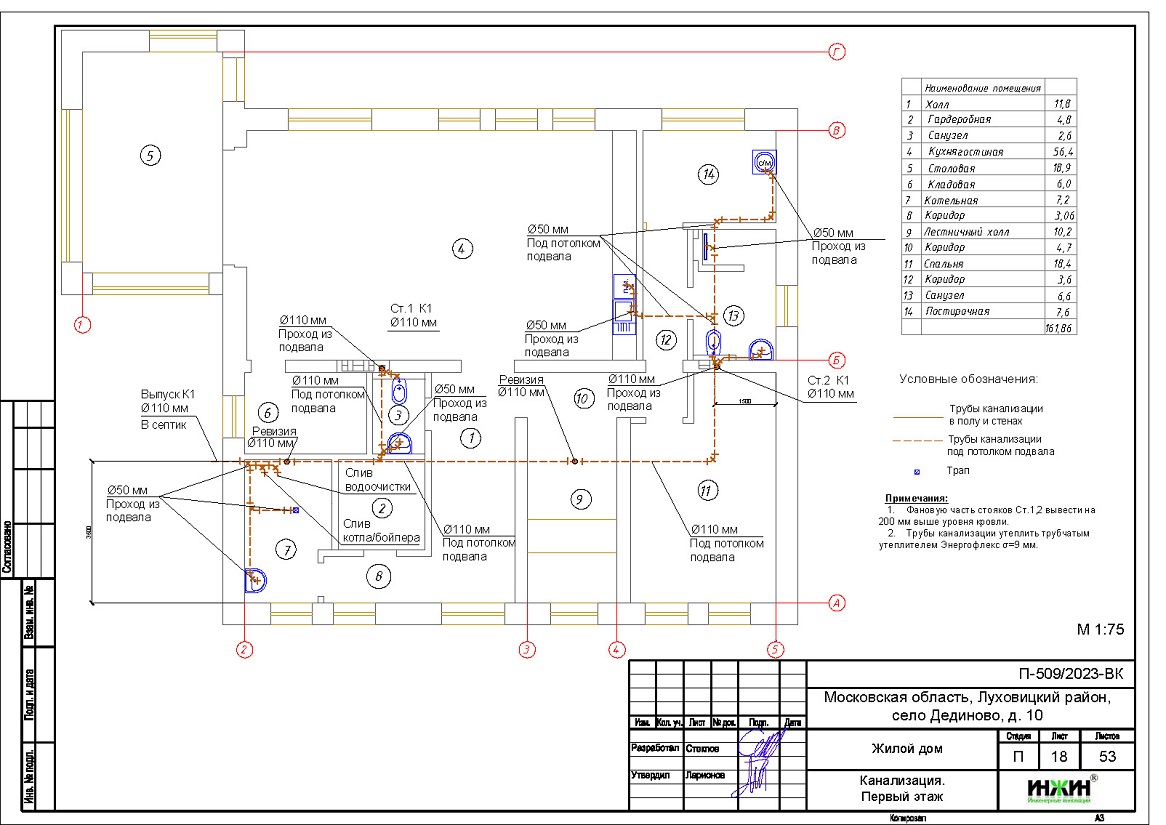 Внутренняя канализация (проект канализации) дома в с. Дединово.