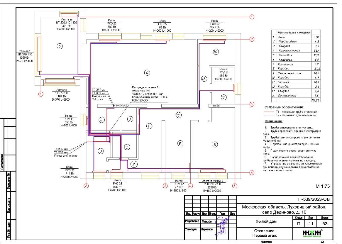 Объем проекта отопления, канализации и водоснабжения дома в с. Дединово: 53 листа.