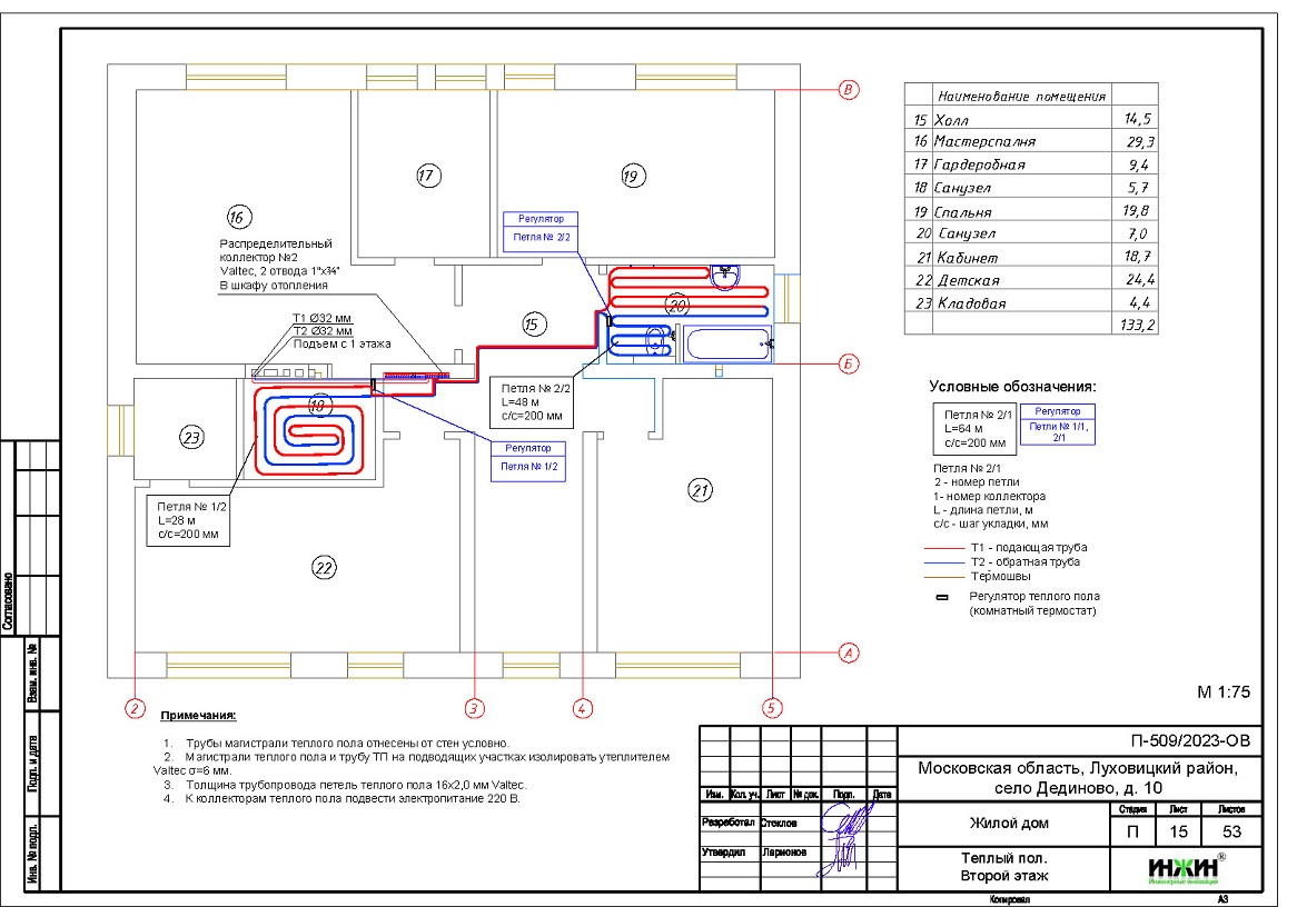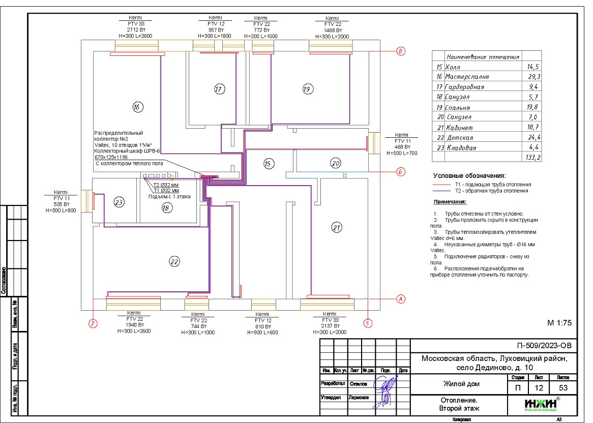 Водяной теплый пол дома в с. Дединово (проект теплого пола).