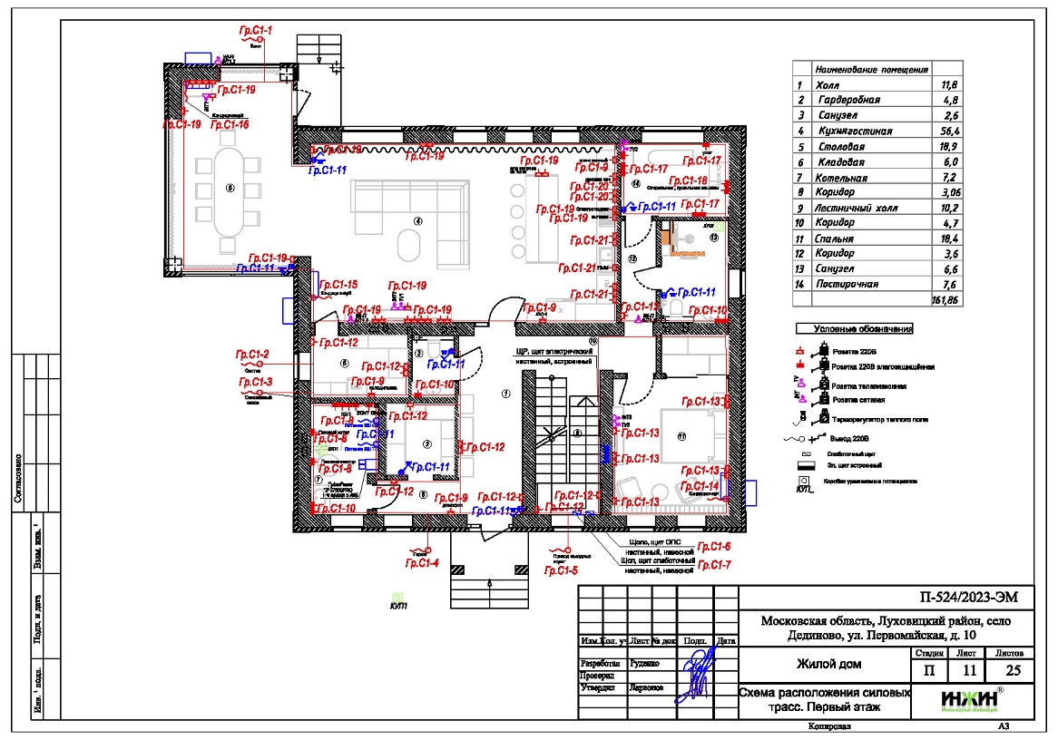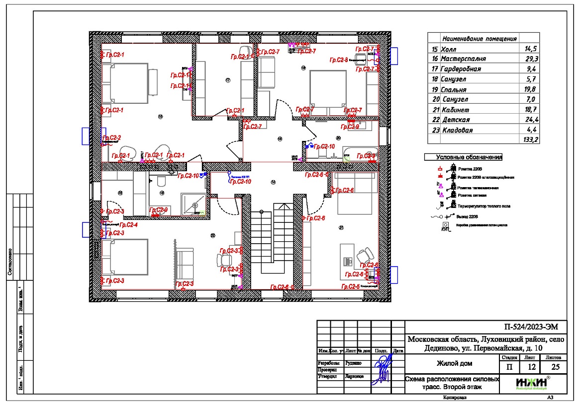 Объем проекта электрики дома 338 м.кв.: 25 листов.