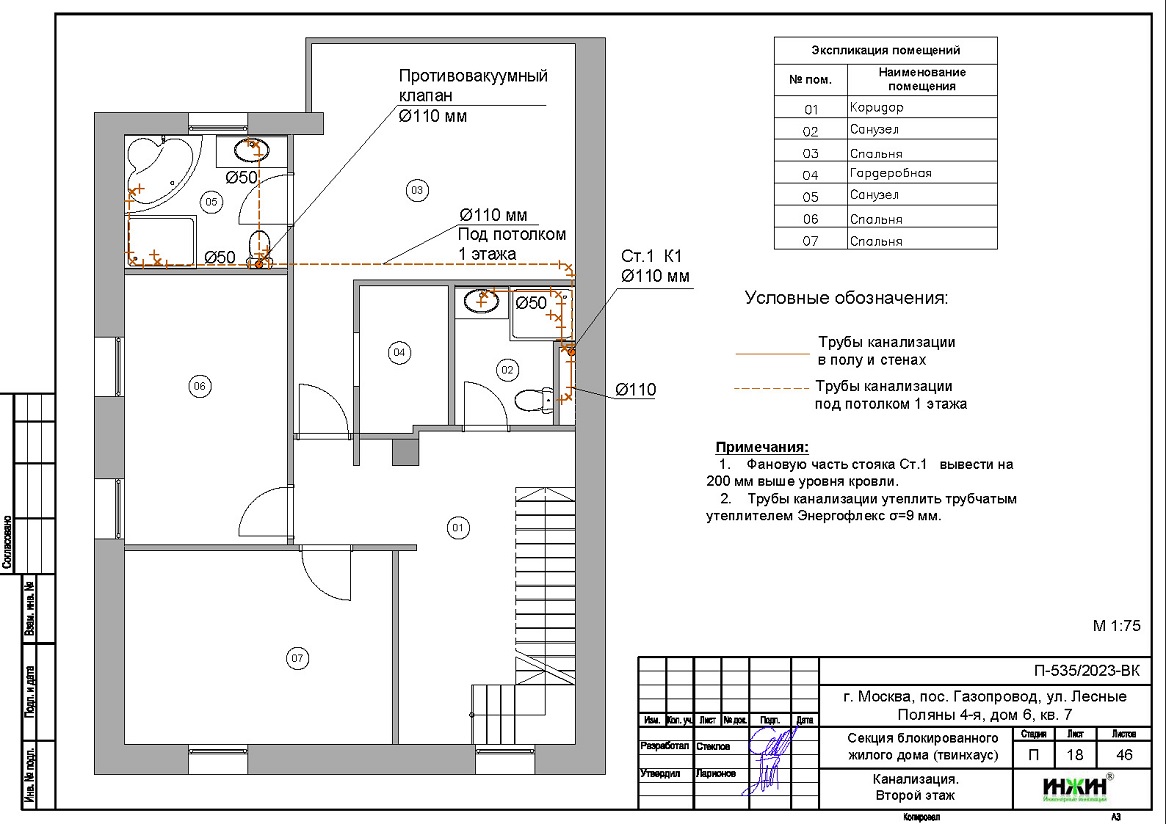 Внутренняя канализация (проект канализации) дома в пос. Газопровод, г. Москва.