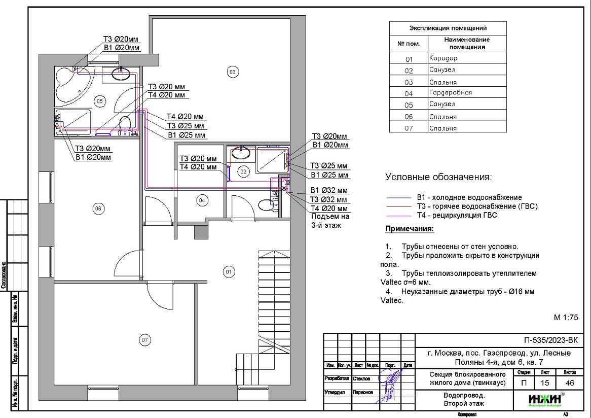Внутренний водопровод дома в пос. Газопровод, г. Москва (проект водоснабжения).