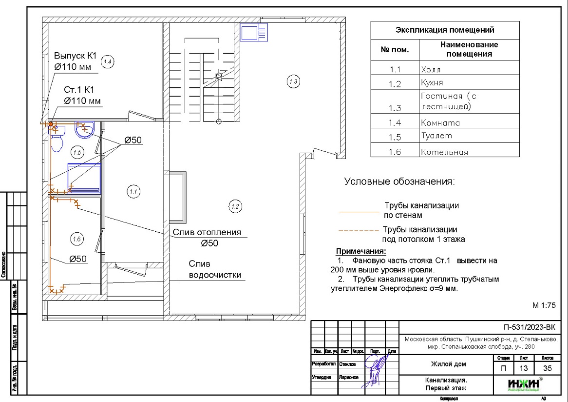 Внутренняя канализация (проект канализации) дома в д. Степаньково.