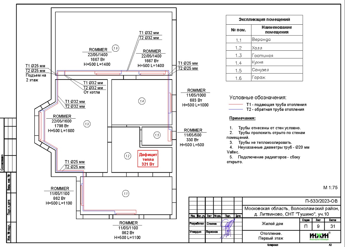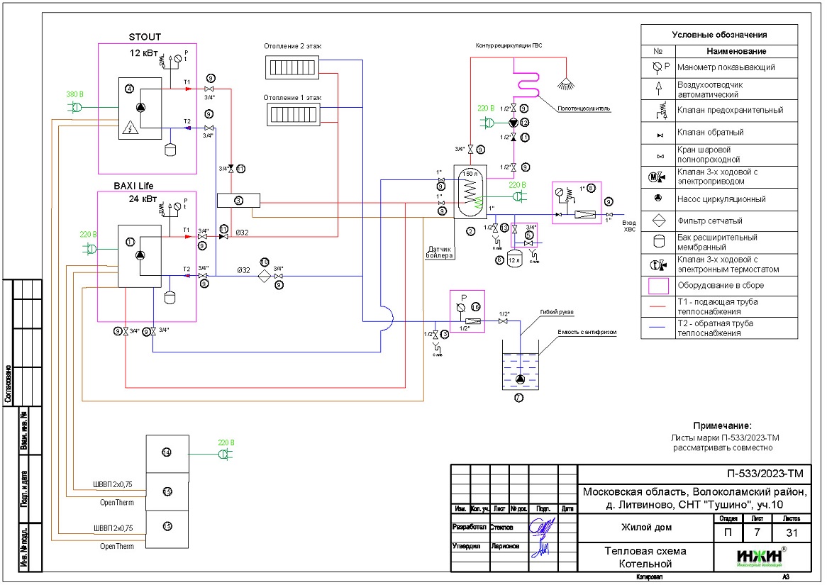 Объем проекта отопления дома в СНТ "Тушино": 31 лист.
