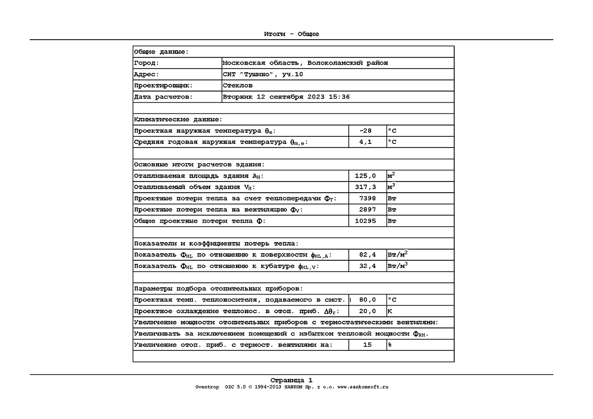 1. Пояснительная записка проекта, общие данные по системе отопления дома 120 м.кв. в СНТ "Тушино".