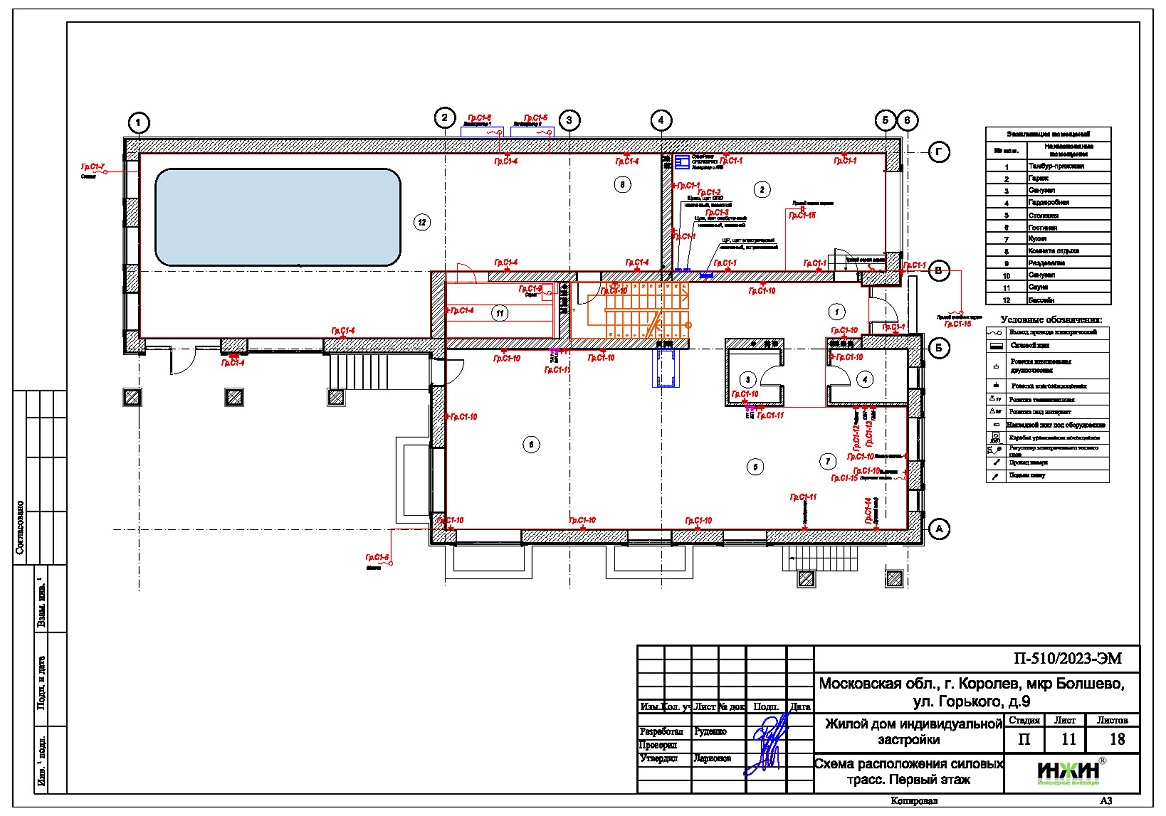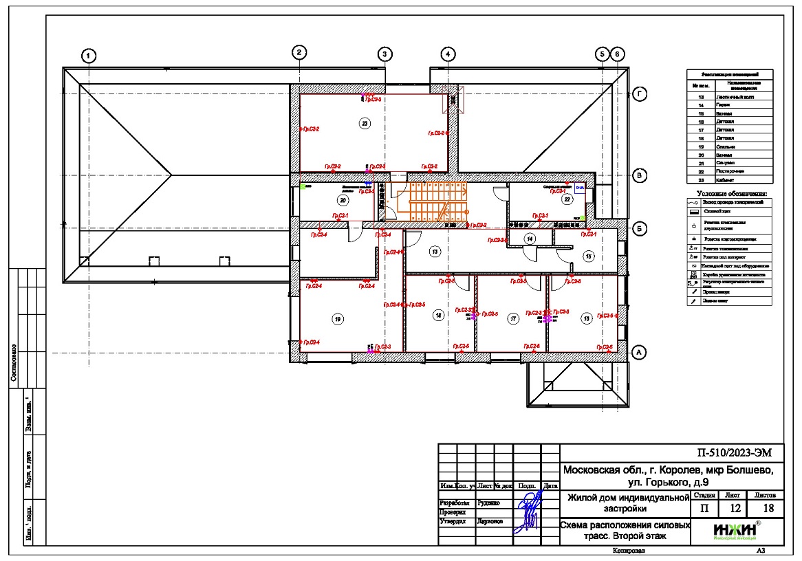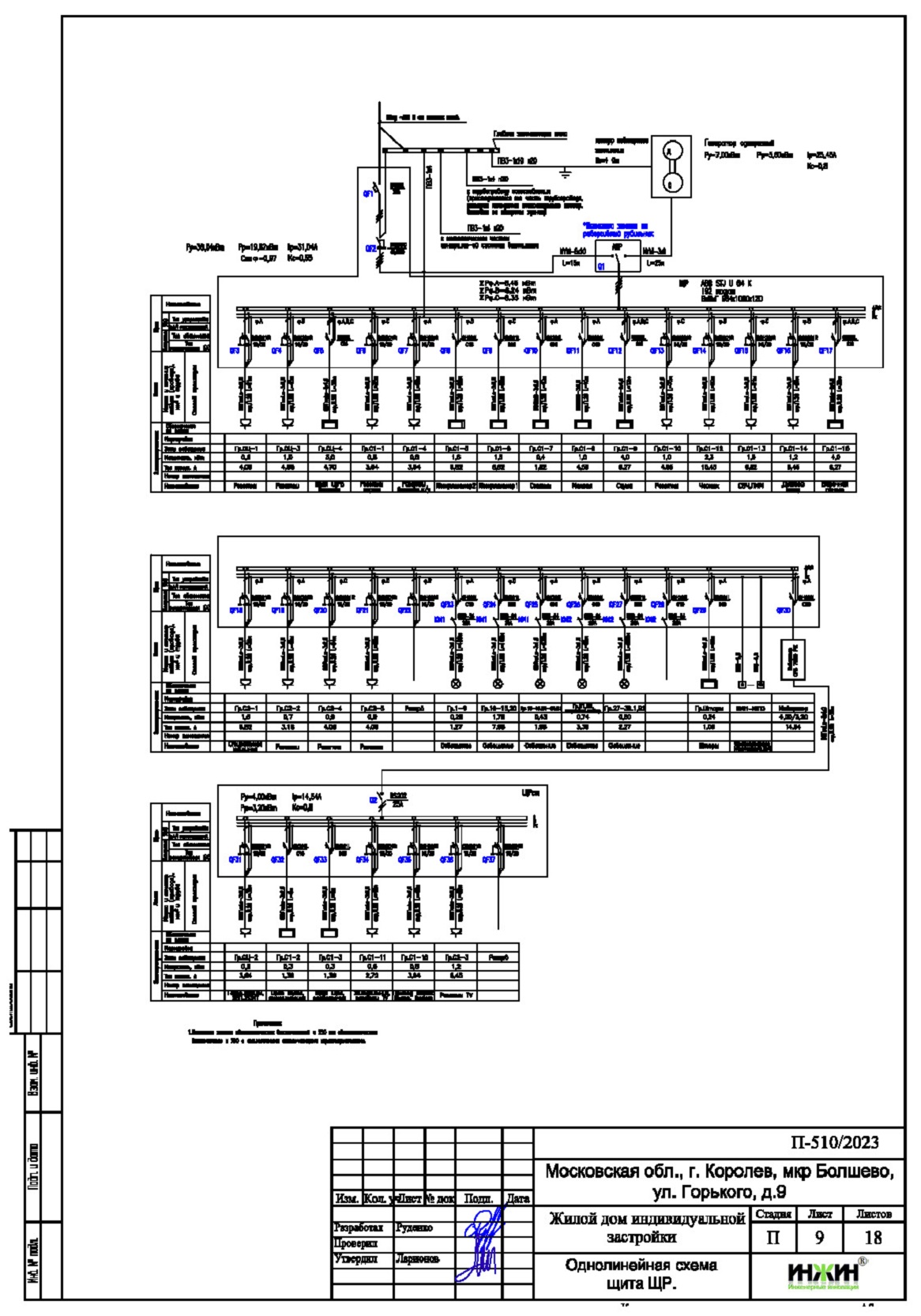 Объем проекта электрики дома 650 м.кв.: 18 листов.