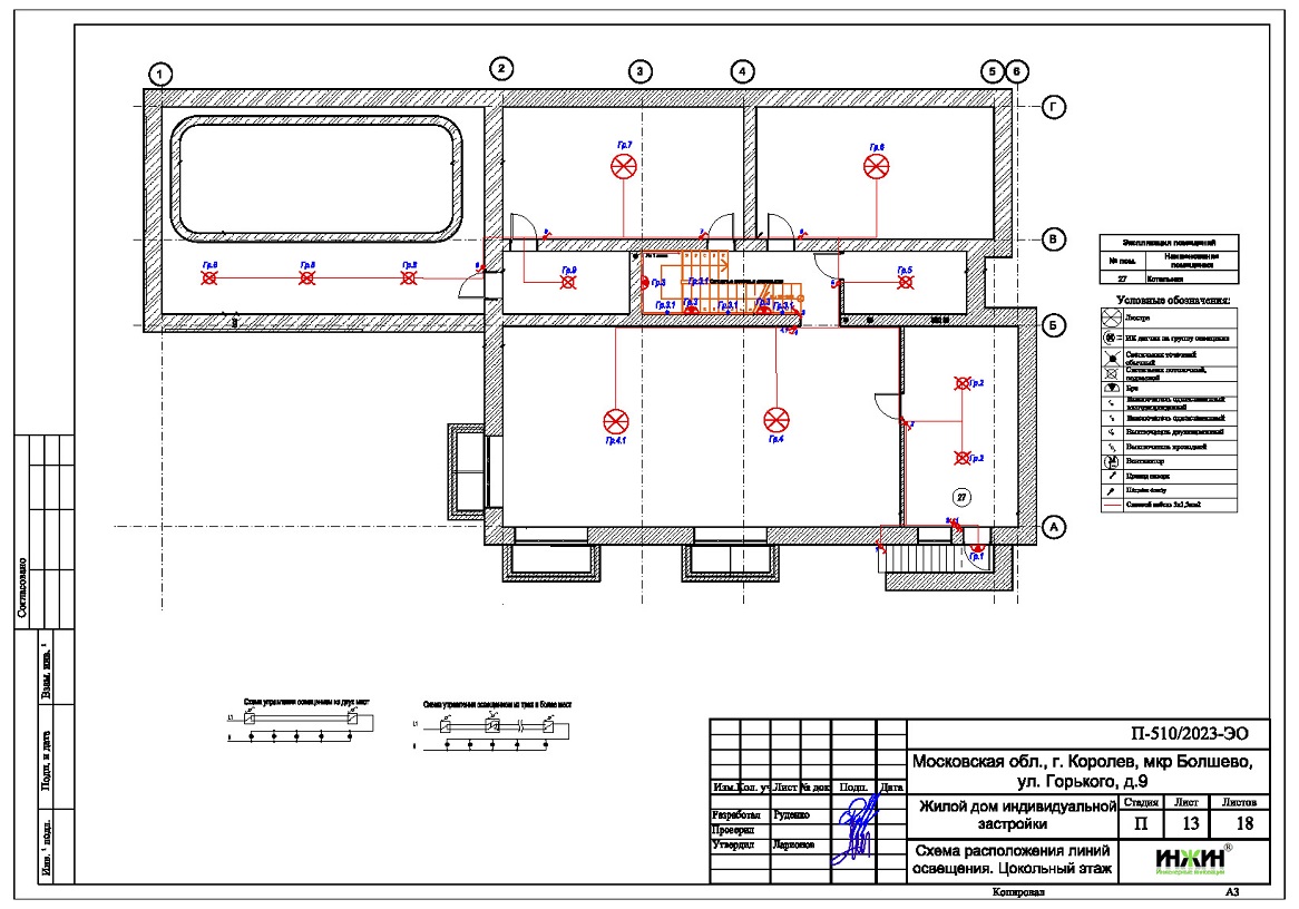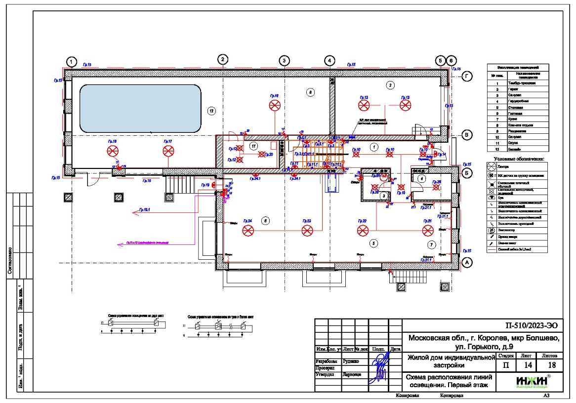 4. Чертежи групповых осветительных сетей дома в Королёве.