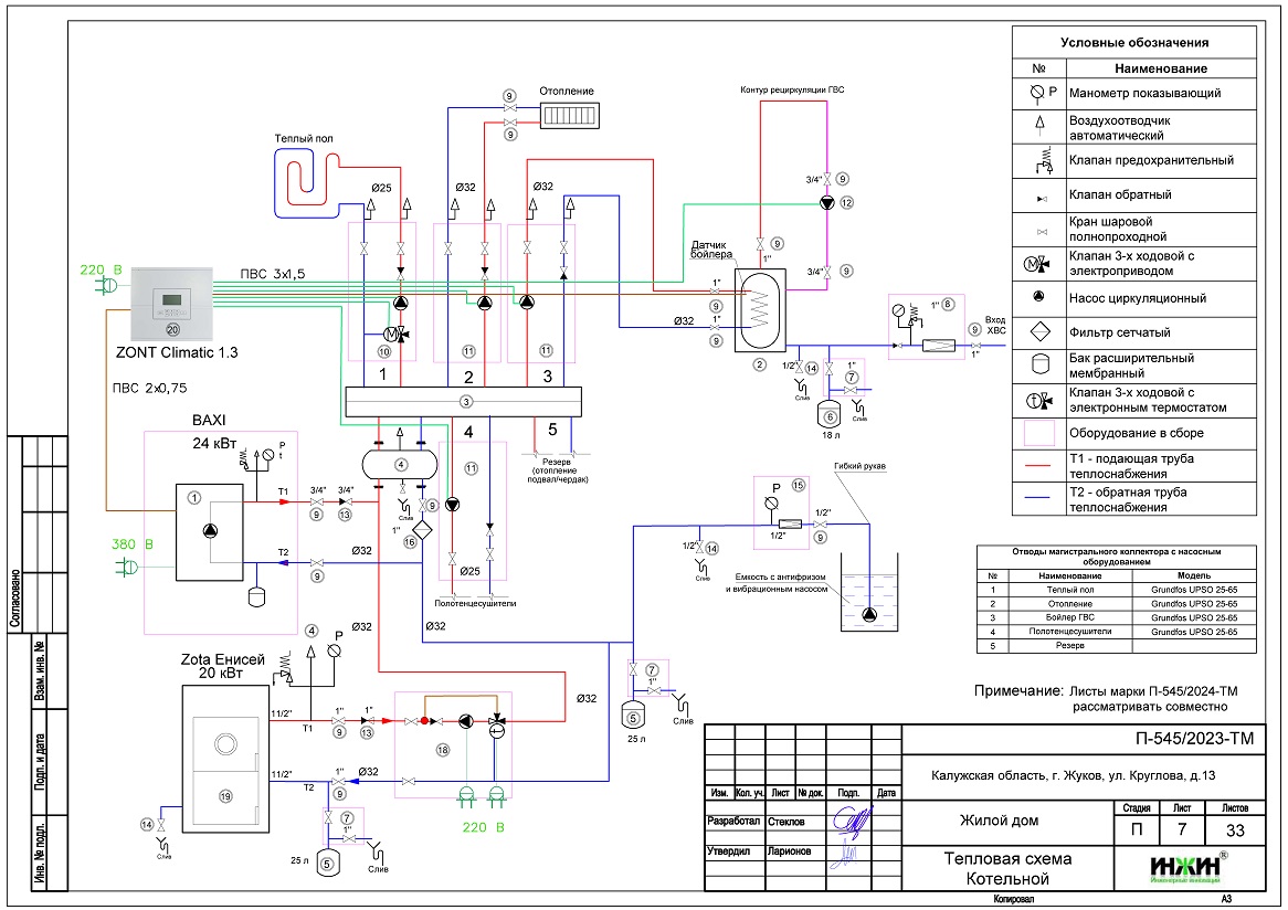 Состав проекта котельной, отопления дома в г. Жуков Калужской области: