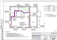 o Выполнен теплотехнический расчет отопления дома (утеплитель кровли дома - минвата 200мм) с учетом теплопотерь через ограждающие конструкции при наружной температуре -27°С для Калуги (по СП 131.13330.2012), расчетный расход тепла на отопление дома составил 13,28 кВт, удельные теплопотери 101,9 Вт/м.кв.;