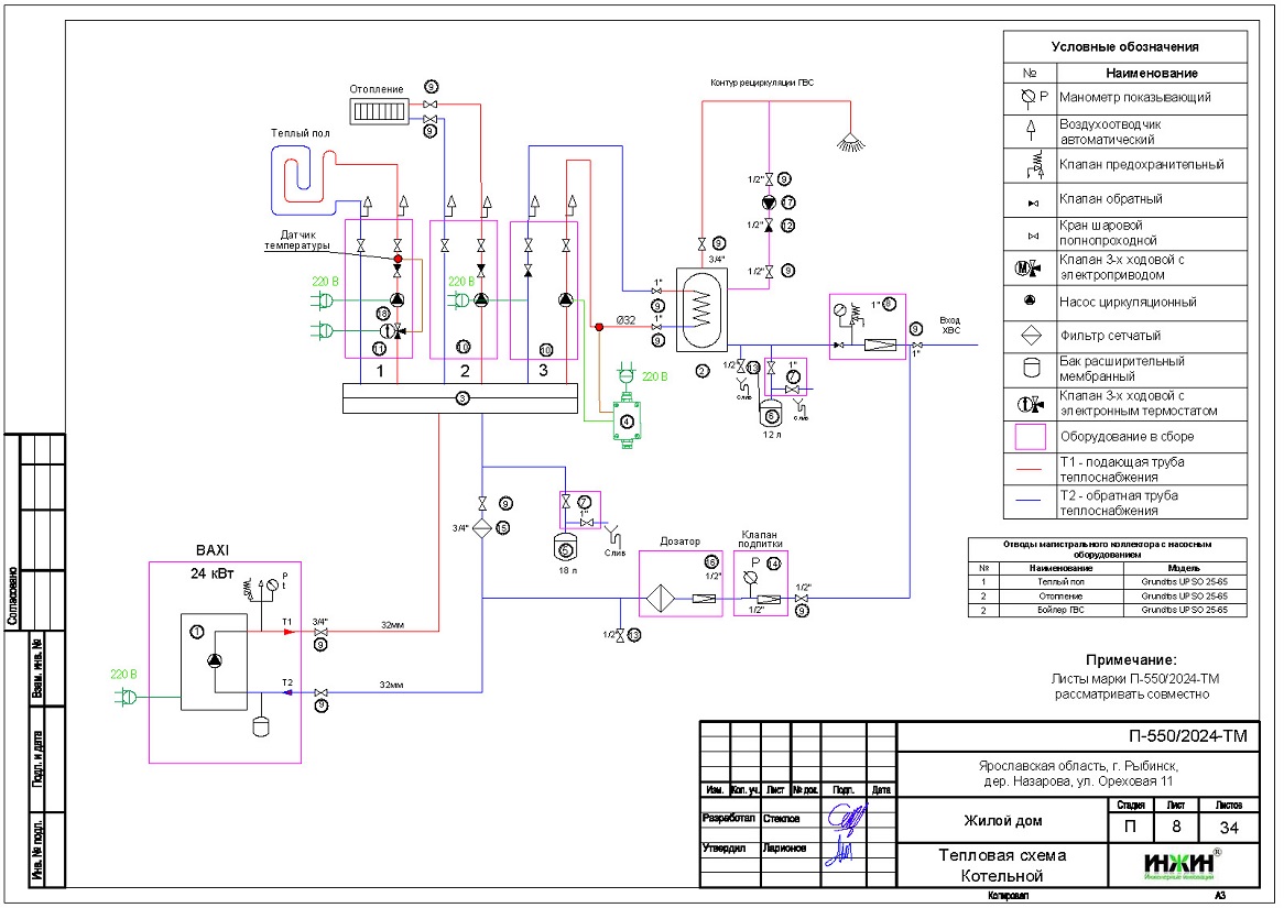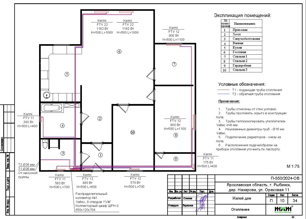 Объем проекта отопления дома в Рыбинске: 34 листа.