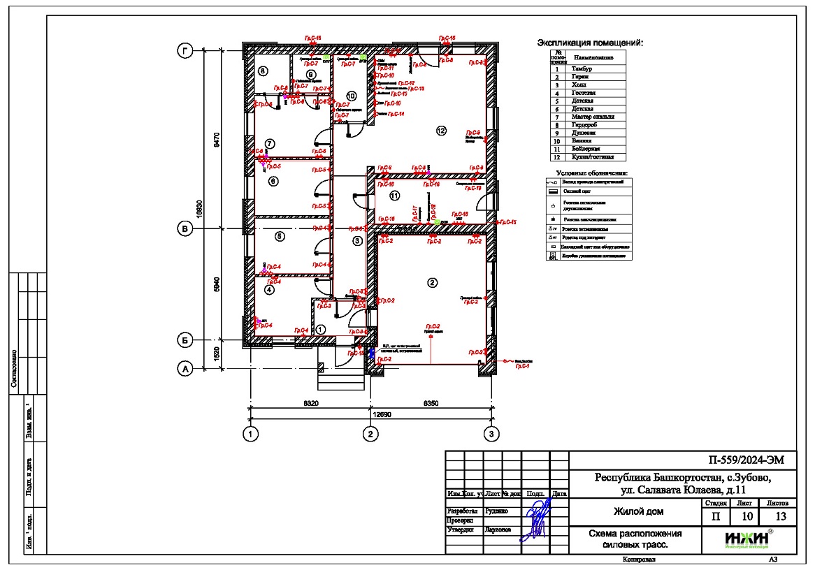 3. Чертежи электропроводки дома в с. Зубово, Республика Башкортостан.