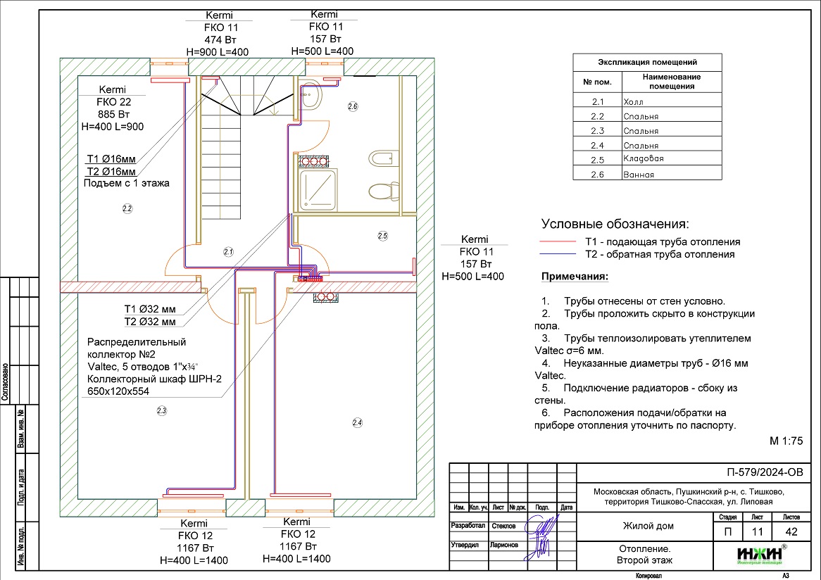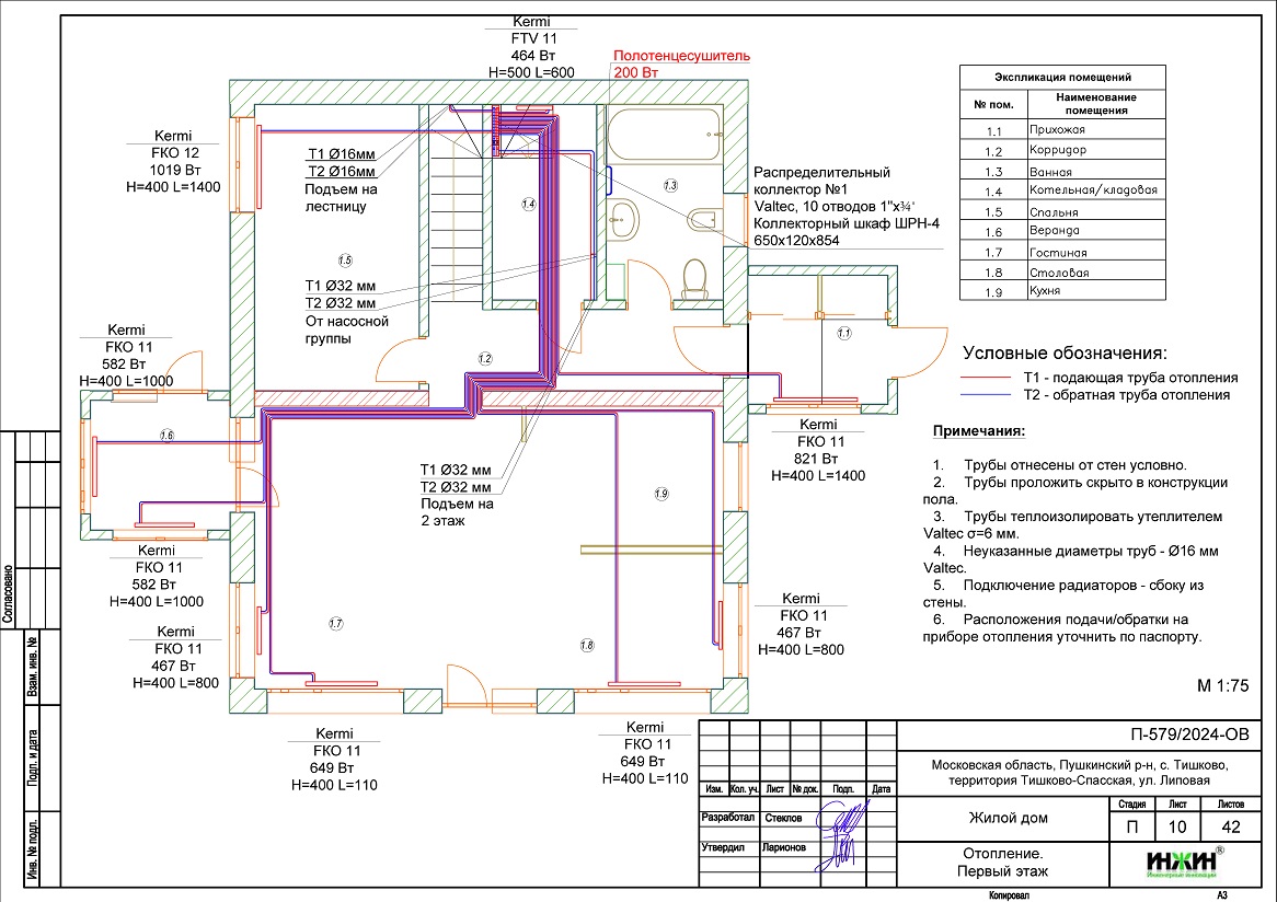 3. Комплект поэтажных чертежей радиаторного отопления дома в Тишково.