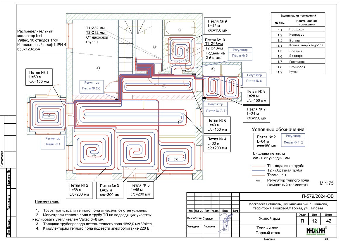 Водяной теплый пол дома в Тишково(проект теплого пола).