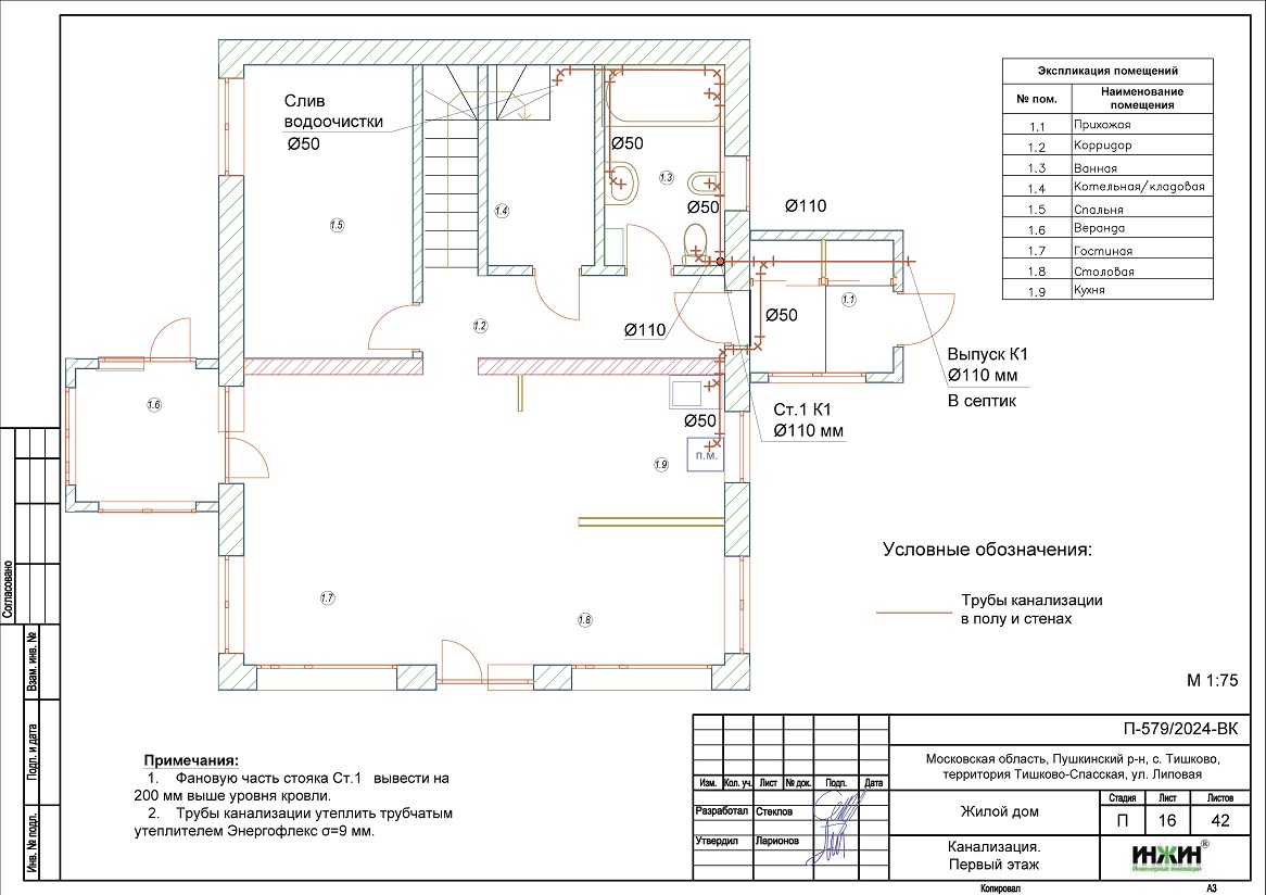 Внутренняя канализация (проект канализации) дома в Тишково.