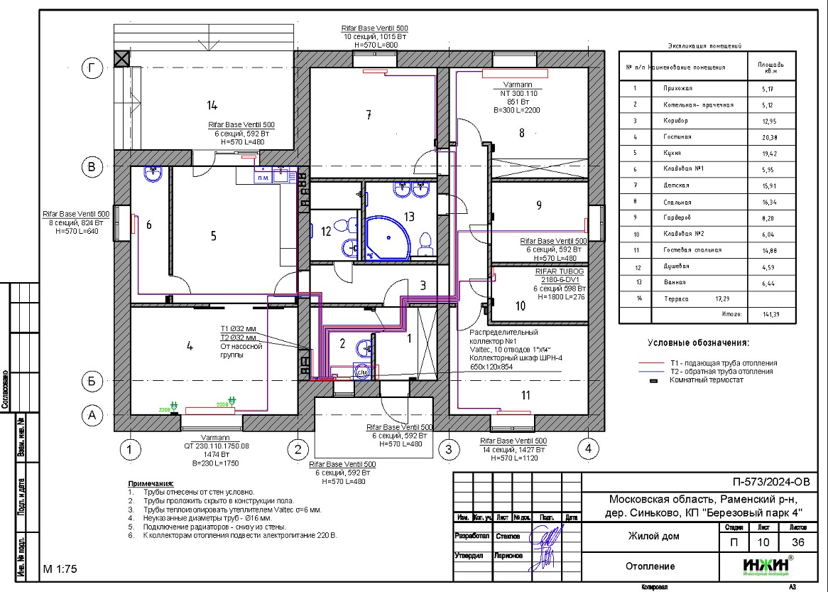 Объем проекта отопления и водоснабжения дома в КП "Березовый парк 4": 36 листов.
