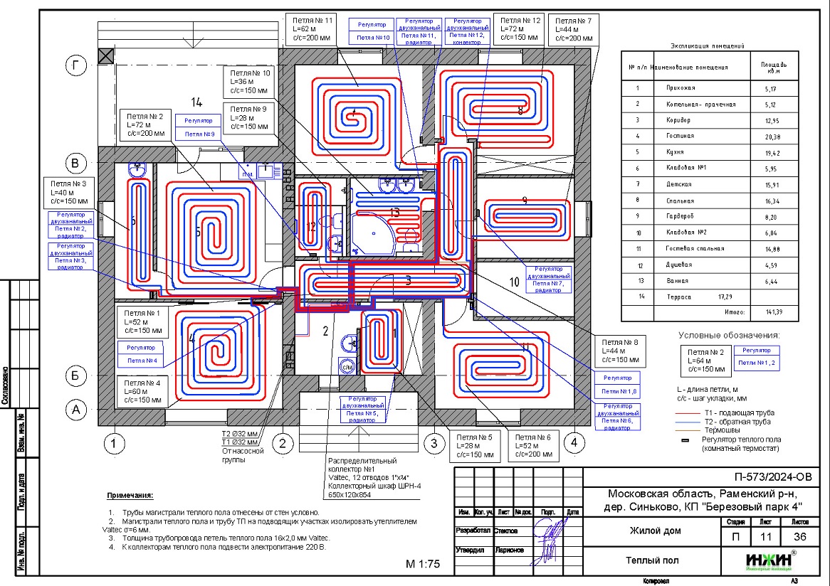 Водяной теплый пол дома в КП "Березовый парк 4"(проект теплого пола).
