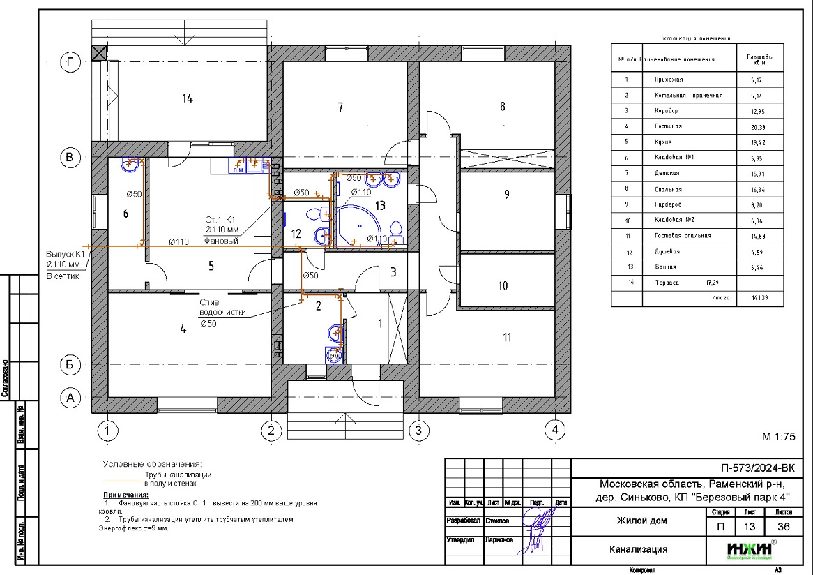 Внутренняя канализация (проект канализации) дома в КП "Березовый парк 4".