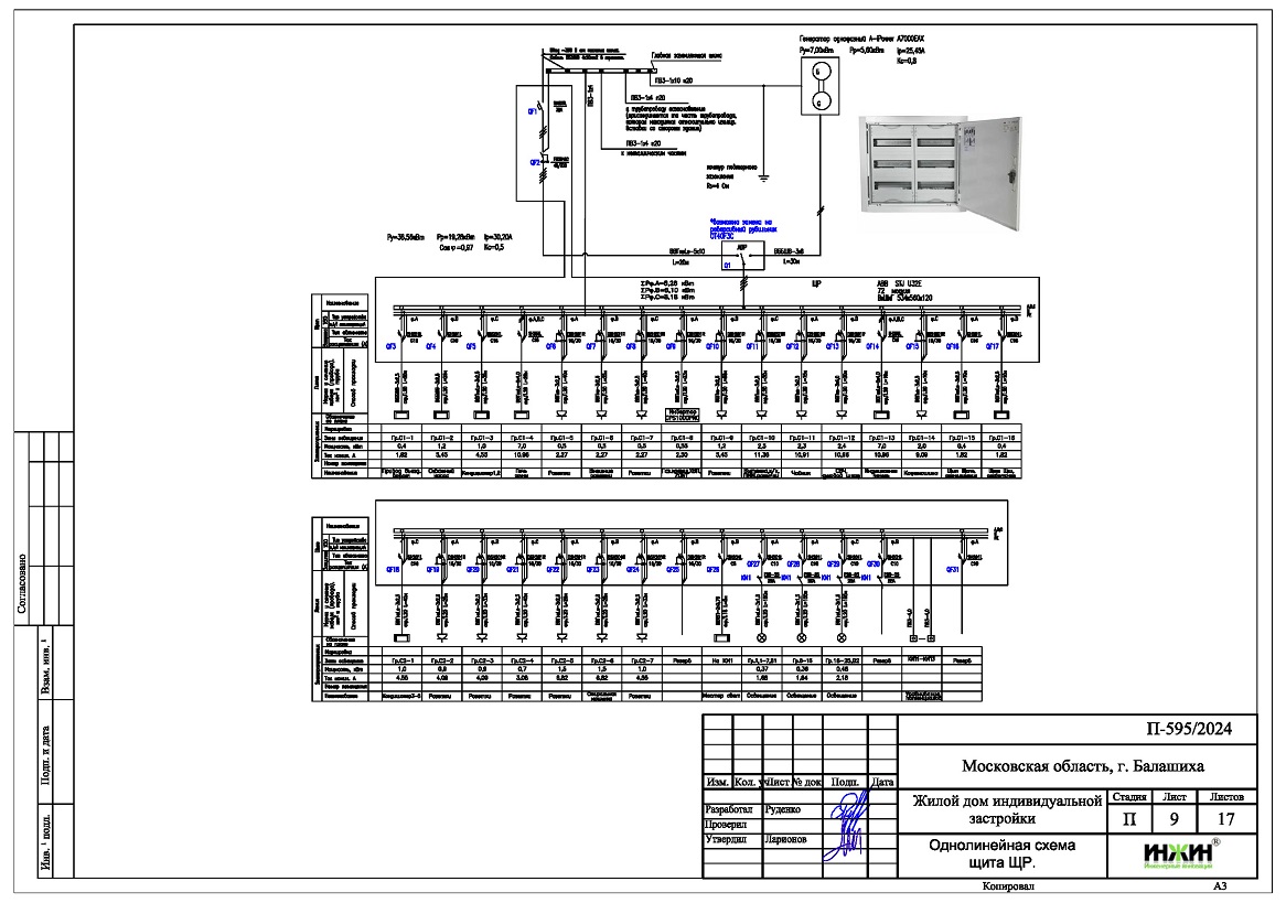 2. Однолинейные схемы вводного распределительного устройства и электрического распределительного щита дома 181 м.кв.