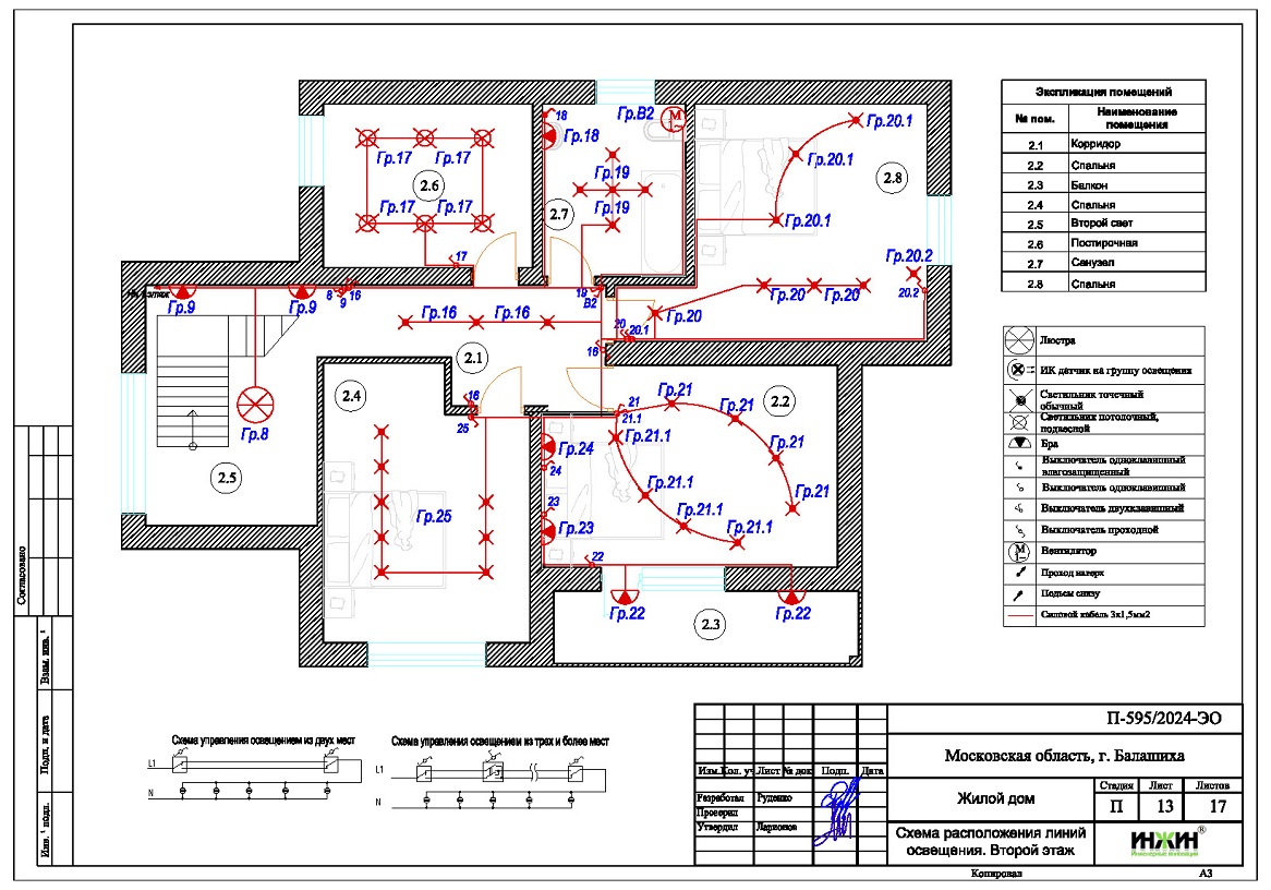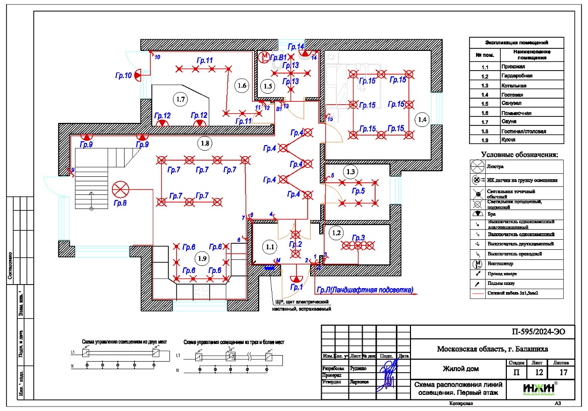 4. Чертежи групповых осветительных сетей дома в Балашихе.