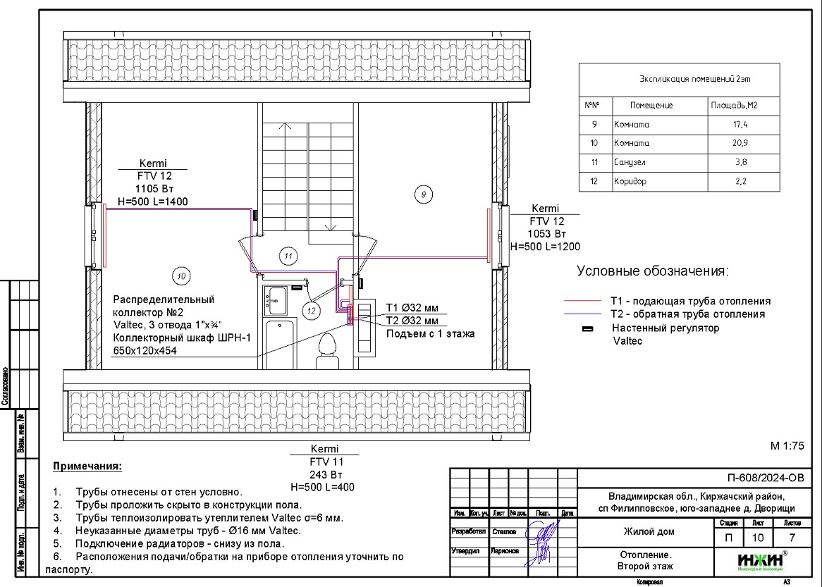 3. Комплект поэтажных чертежей радиаторного отопления дома в дер. Дворищи Владимирской области.