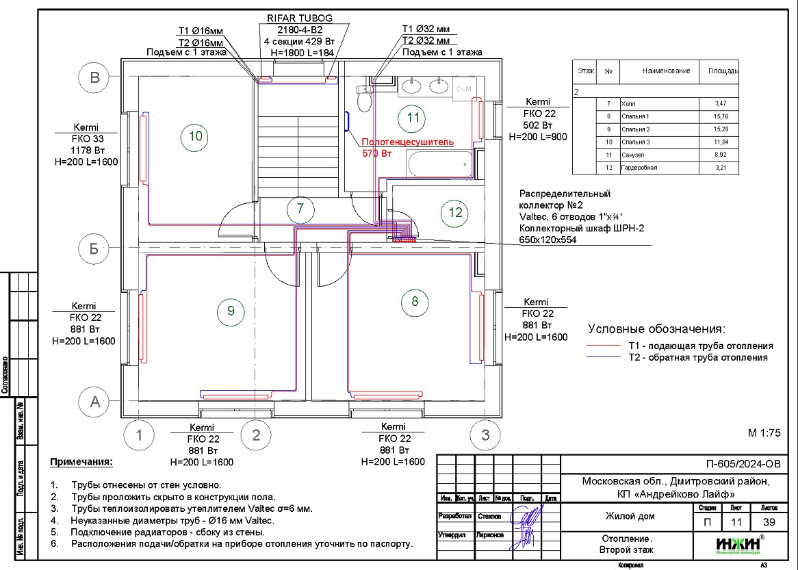 3. Комплект поэтажных чертежей радиаторного отопления дома в КП «Андрейково Лайф».