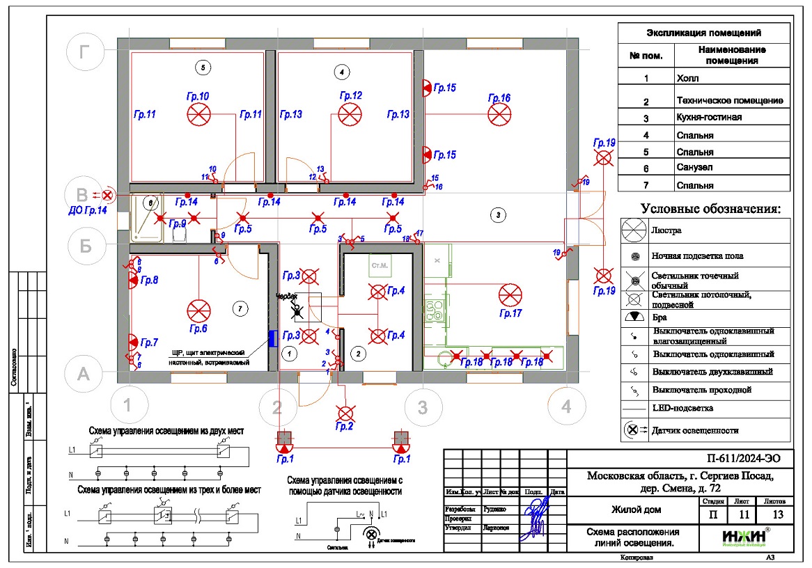 4. Чертежи групповых осветительных сетей дома в дер. Смена.