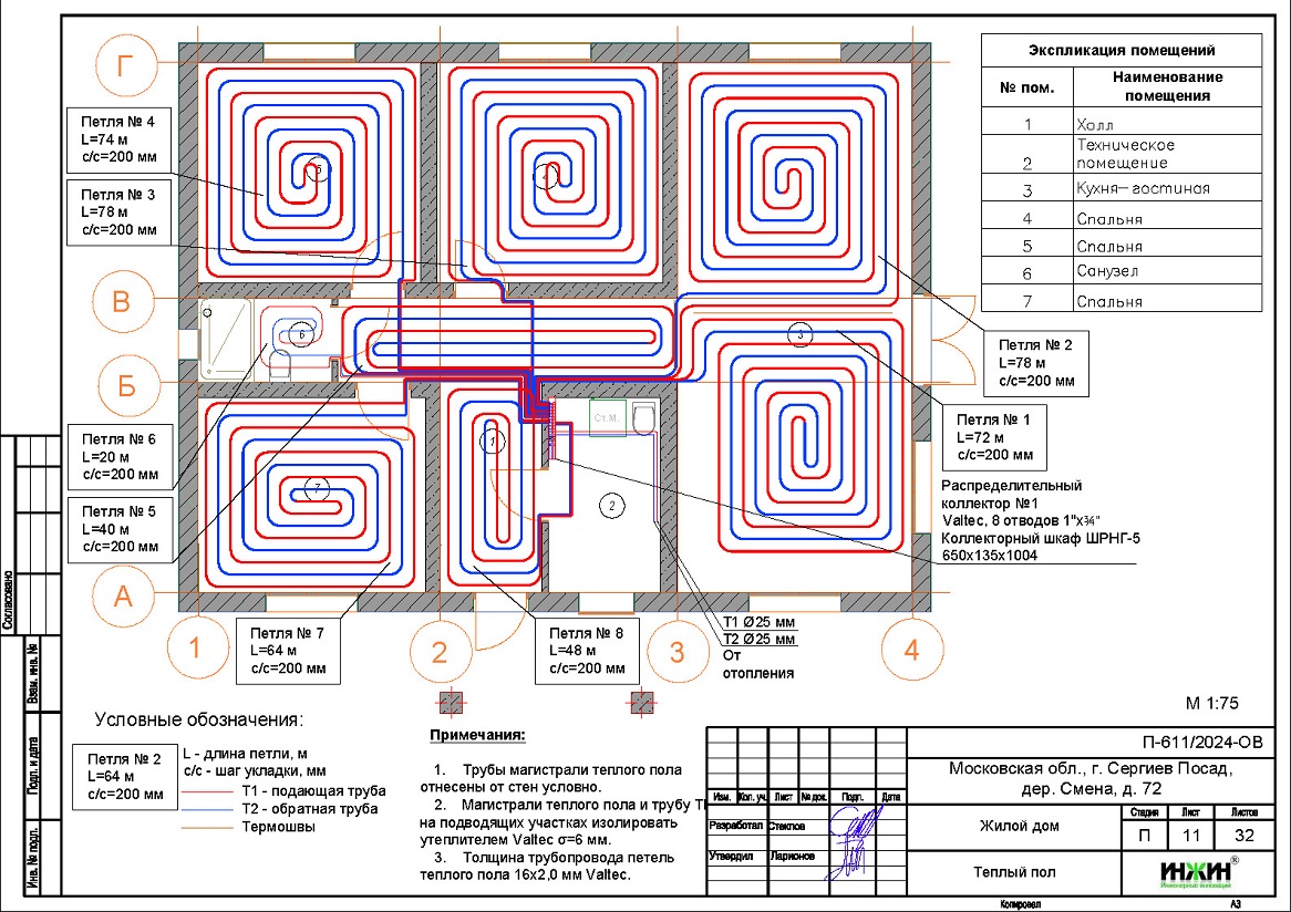 Для этого дома в дер. Сменавыполнен проект отопления.