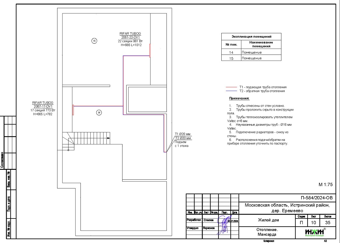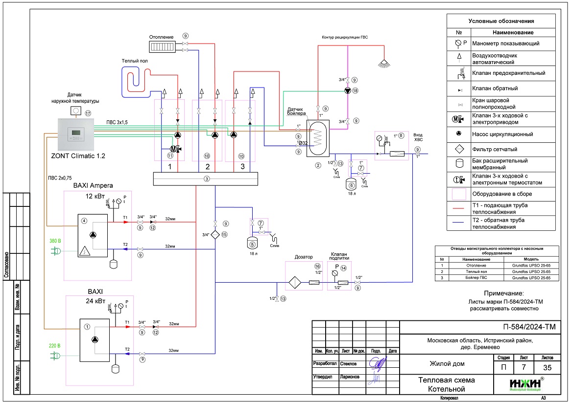 Объем проекта отопления и водоснабжения дома в КП «Еремеево Лайф»: 35 листов.