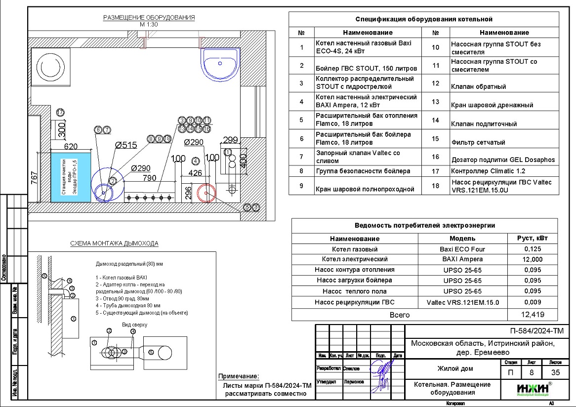 Состав проекта котельной, отопления, канализации и водоснабжения дома в КП «Еремеево Лайф»: