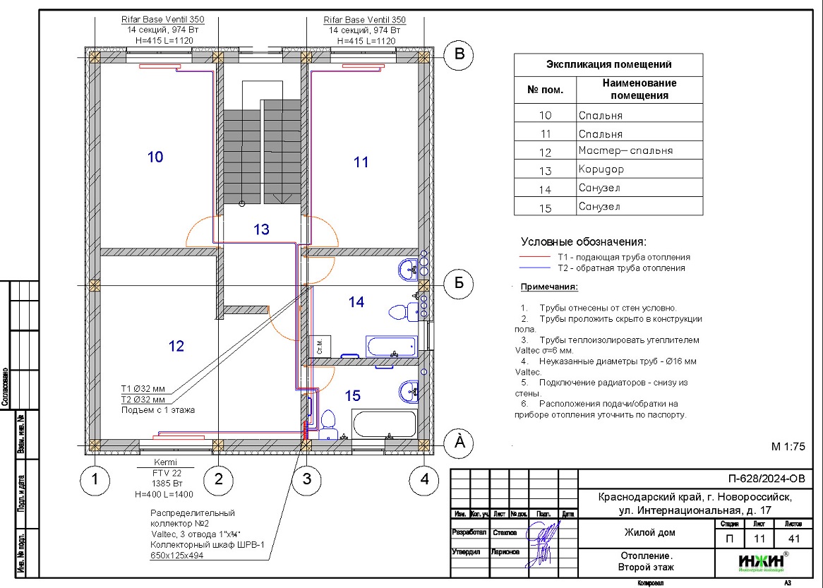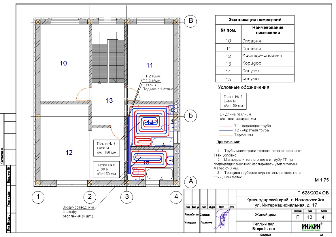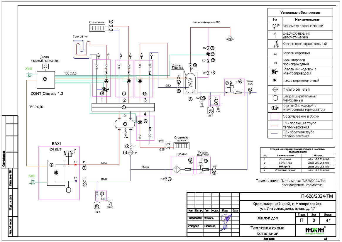 Объем проекта отопления, канализации и водоснабжения дома в Новороссийске: 41 листа.