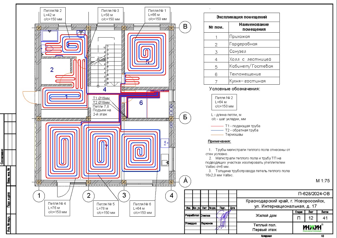 Отопление дома в Новороссийске (173 м.кв.), проект