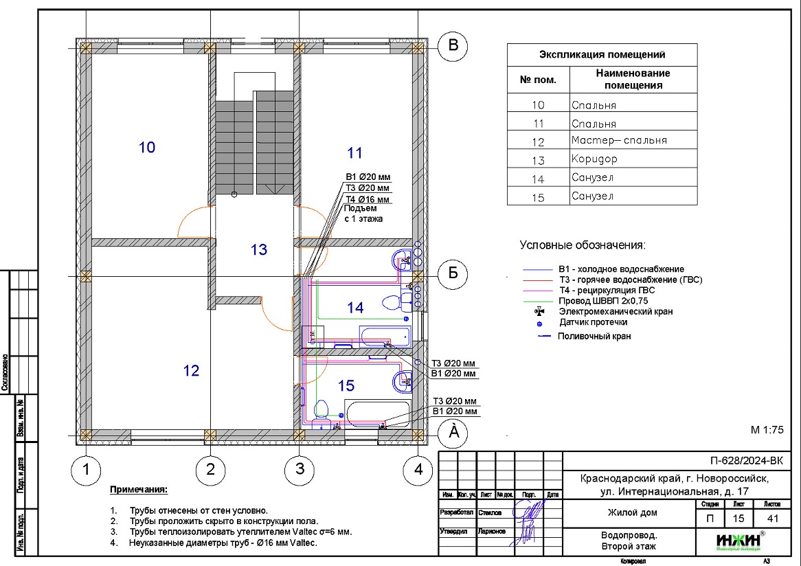 Внутренний водопровод дома в Новороссийске(проект водоснабжения).