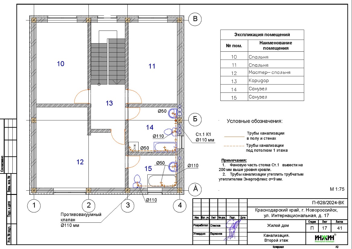 Внутренняя канализация (проект канализации) дома в Новороссийске.