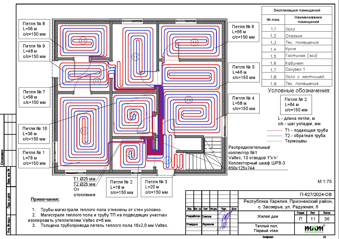 Водяной теплый пол дома в с. Заозерье, Республика Карелия(проект теплого пола).