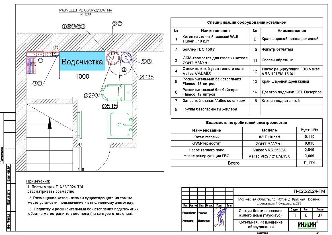 Состав проекта котельной, отопления, канализации и водоснабжения таунхауса в КП "Кембридж":